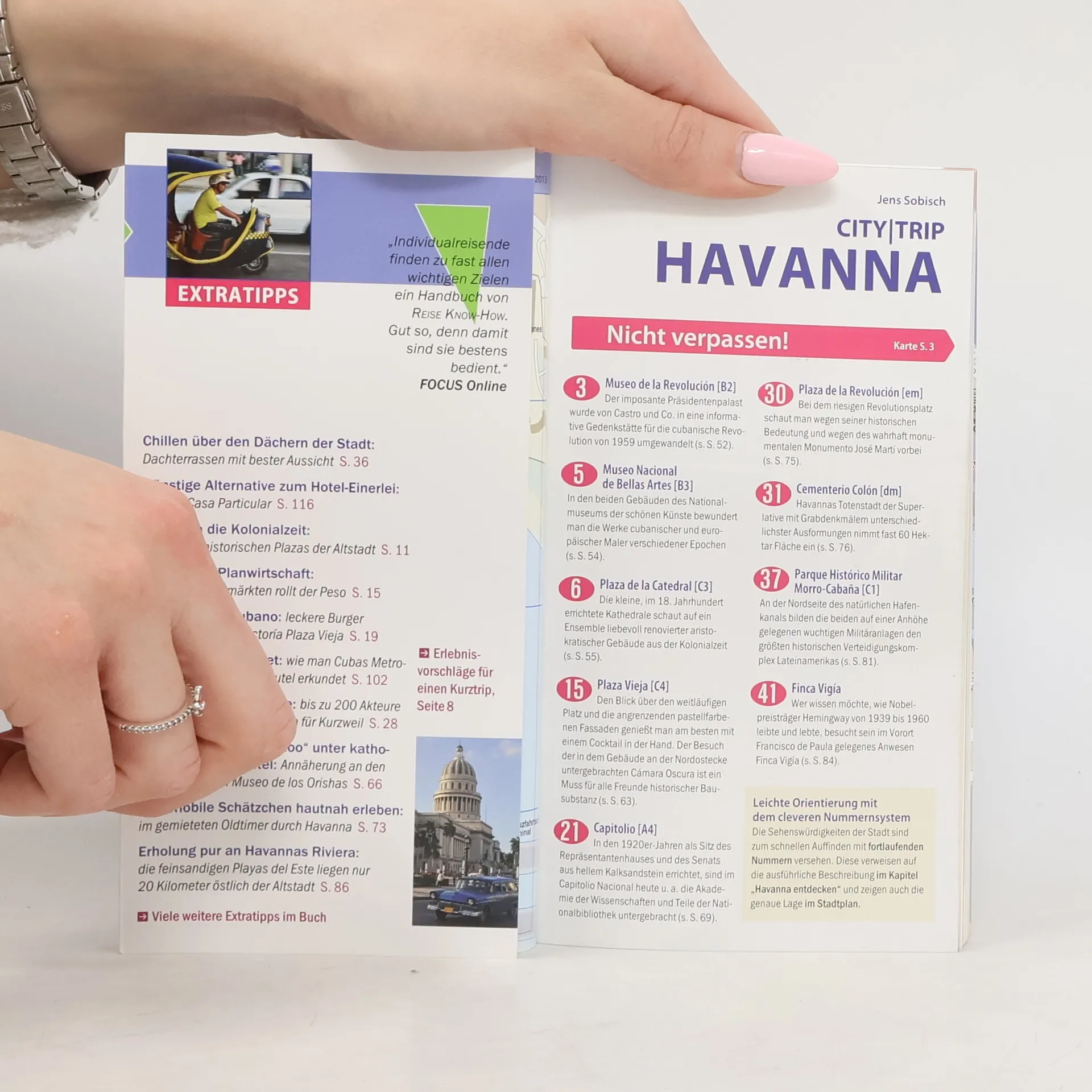 Dieser Stadtführer ist der ideale Begleiter, um die kubanische Hauptstadt eigenständig zu erkunden. Er bietet eine umfassende Vorstellung der wichtigsten Sehenswürdigkeiten und Museen sowie weniger bekannter Attraktionen und Viertel. Die faszinierende Architektur, von alten Herrenhäusern bis zu spanischen Festungen, wird detailliert beschrieben. Der Guide enthält abwechslungsreiche Stadtspaziergänge und Erlebnisvorschläge für ein langes Wochenende sowie Ausflüge zu karibischen Traumstränden und dem Mausoleum von „El Che“. Shoppingtipps reichen vom stimmungsvollen Bauernmarkt bis zur Auswahl der richtigen Zigarre. Zudem werden die besten Lokale vorgestellt und Wissenswertes über die kreolische Küche vermittelt. Für die Abendgestaltung gibt es Empfehlungen von Cabaret bis Sundowner auf der Dachterrasse. Der Guide bietet eine Auswahl an Unterkünften, von preiswert bis ausgefallen, sowie praktische Infos zu Anreise, Preisen, Stadtverkehr, Touren, Events und Notfallhilfe. Hintergrundartikel beleuchten die Geschichte und Mentalität der Bewohner. Eine kleine Sprachhilfe Spanisch mit wichtigen Vokabeln für den Reisealltag ist ebenfalls enthalten. Ein herausnehmbarer Faltplan und eine kostenlose Web-App für Smartphone, Tablet und PC ergänzen das Angebot.