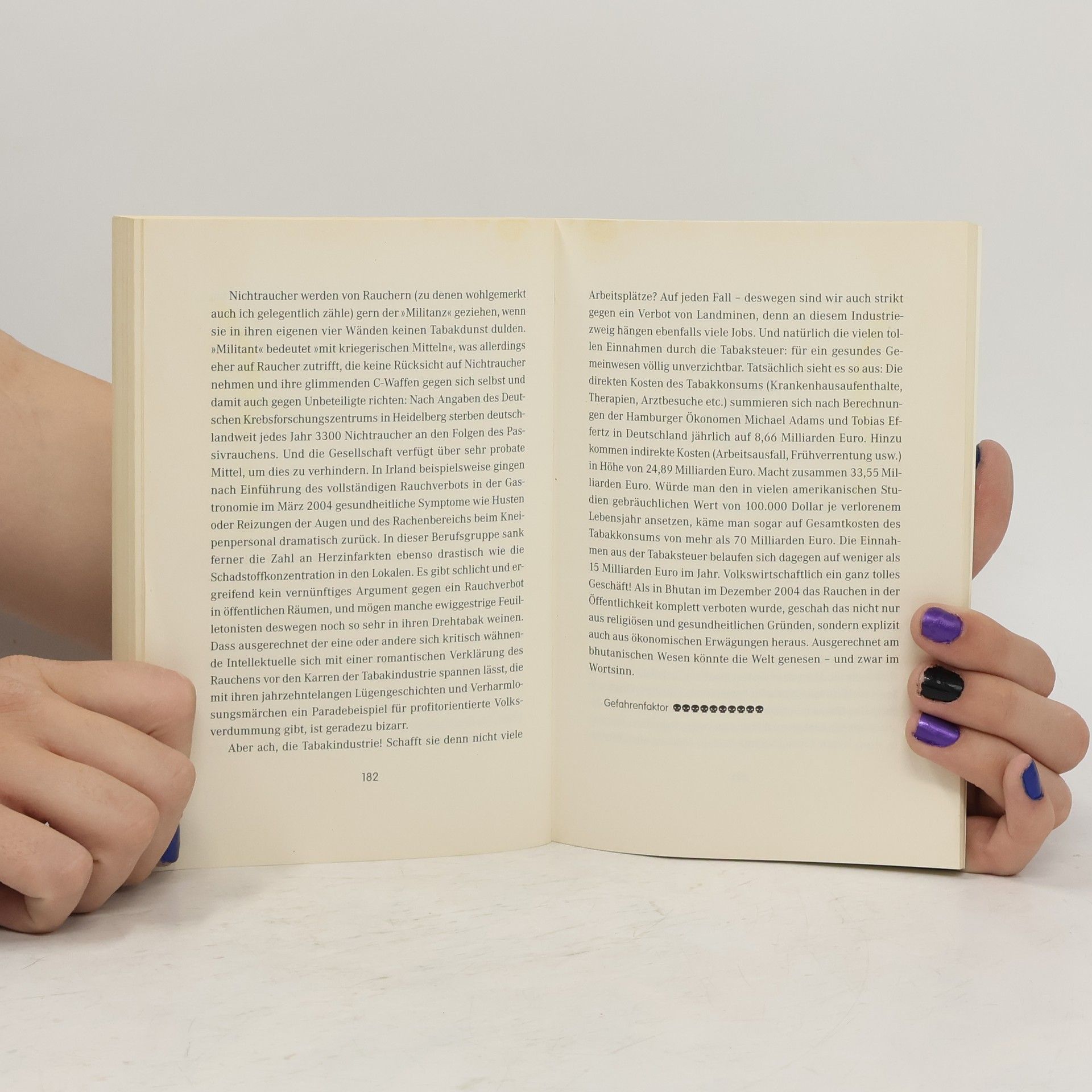 Wo lauert die neuste Gefahr? Angst hat Konjunktur, eine Bedrohung jagt die andere. Fürchten wir uns vor den falschen Dingen? Flugzeugabstürze, Kampfhundattacken, Terroranschläge, Wirbelstürme, Hochwasser, heimtückische Krankheiten: Die medial vermittelte Welt ist ein einziges Hochrisikogebiet. Warum aber wurden wir nicht längst dahingerafft von Kleinstlebewesen im Joghurt oder von Cornflakes aus gentechnisch verändertem Mais? Wer mit sorgenvollem Blick auf die Mattscheibe starrt, sich zur Beruhigung eine Zigarette anzündet und das erste Feierabend-Bierchen kippt, lebt womöglich gefährlicher als der Flugzeugpassagier. Unsere Angst ist irrational. Wir sind Kinder, die sich vor der dunklen Kellertreppe fürchten. Das ›Lexikon der Gefahren‹ bringt Licht in den Keller unserer Ängste. Es gibt eine amüsante Übersicht über alles, was uns grundlos beunruhigt. Und über die Dinge, die gefährlicher sind, als vermutet – von Alkohol bis Zecken.