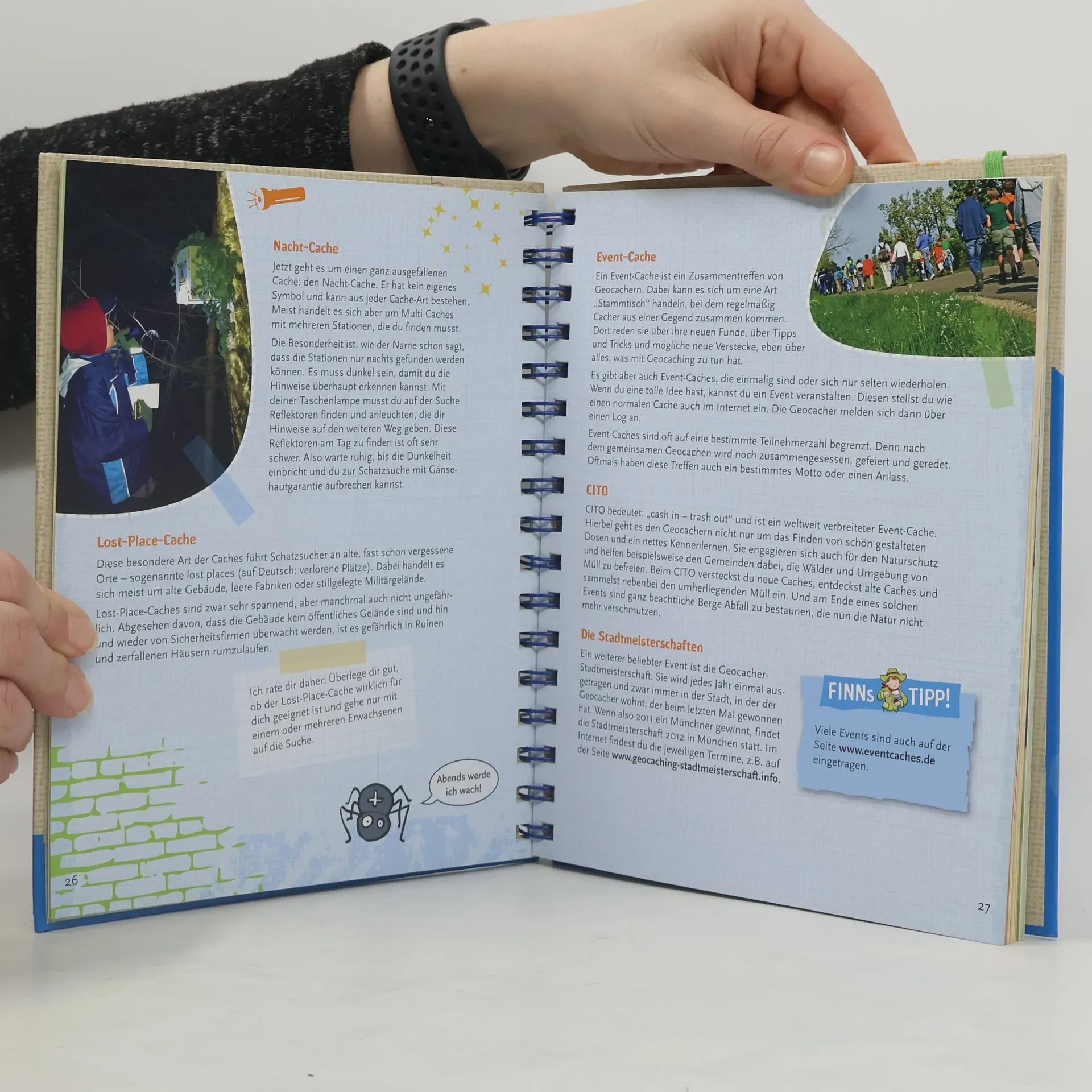 Schatzsuche gibt es nur bei den Piraten? Von wegen! Beim Geocaching, der modernen Schnitzeljagd, müssen Karten gelesen, Rätsel gelöst und das GPS-Gerät beherrscht werden. Die Geocaching-Expedition führt querfeldein: ob am Wasser entlang, im Wald, auf dem Land oder durch die Stadt – das GPS-Gerät weist den Weg zu den Schätzen, die an herrlich aufregenden Plätzen versteckt sind. Bei der faszinierenden Suche sind jede Menge spannende Abenteuer zu bewältigen und spielend leicht werden die kleinen Abenteurer zu richtigen Orientierungs- und Naturexperten. Wie genau Geocaching funktioniert, welche Ausrüstung nötig ist und auf was besonders geachtet werden muss, beschreibt das Buch anschaulich mit tollen Fotos und wertvollen Tipps und Tricks.