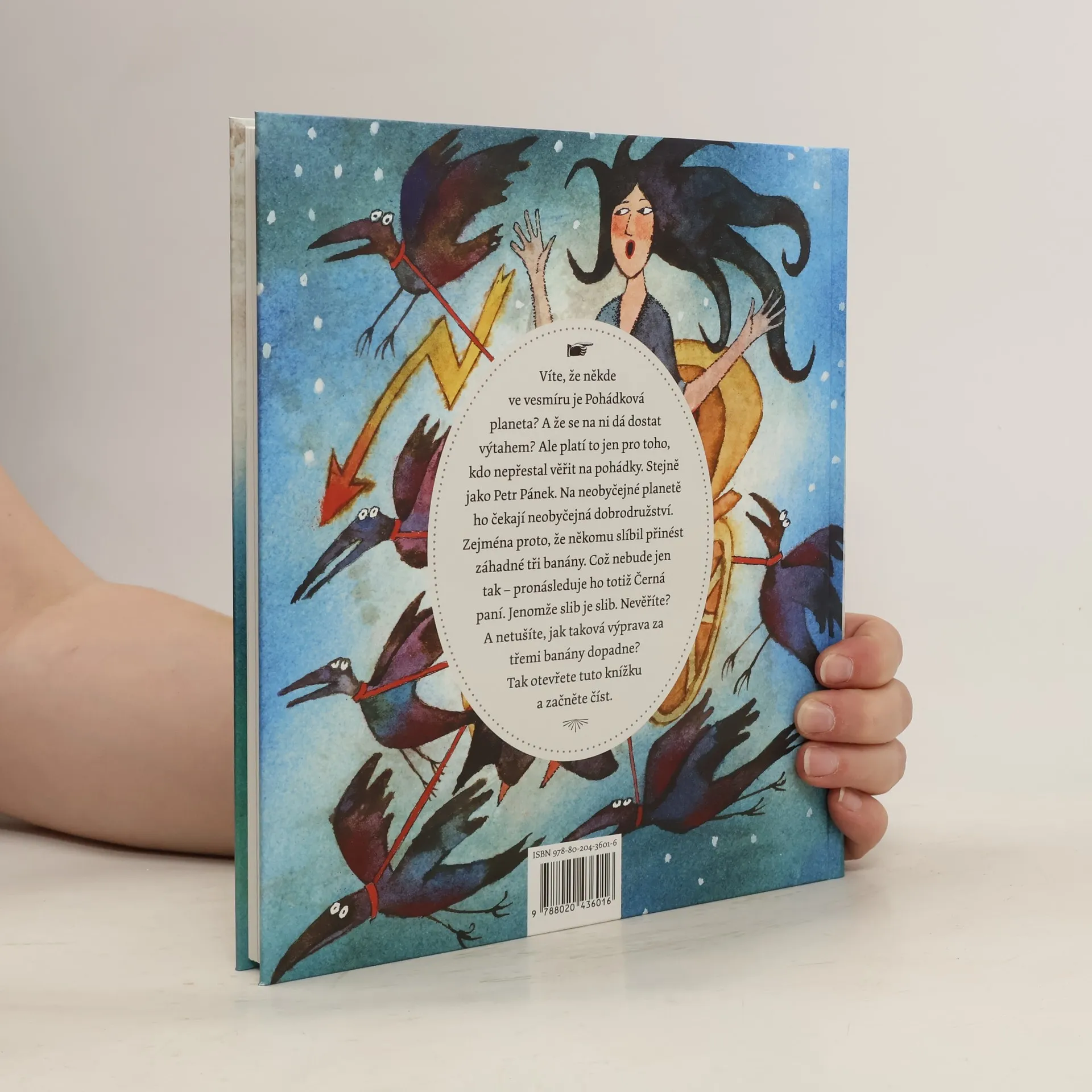 Někde ve vesmíru je určitě Pohádková planeta. Rakety možná záhy přistanou na Marsu, na Venuši, na Jupiteru nebo kdekoli jinde, ale na tuhle planetu se mohou dostat pouze ti, kdo nezapomněli na pohádky. A jak se tam dostanou? Třeba mohou do vesmírných dálav odletět docela obyčejným výtahem. Co však je důležité: že tam prožijí docela neobvyklá, nečekaná a napínavá dobrodružství, při kterých ovšem musí obstát. A to není vždycky snadné – zvláště když je pronásleduje Černá paní. Nevěříte? A netušíte, jak taková výprava za třemi banány dopadne? Tak otevřete tuto knížku a začněte číst.