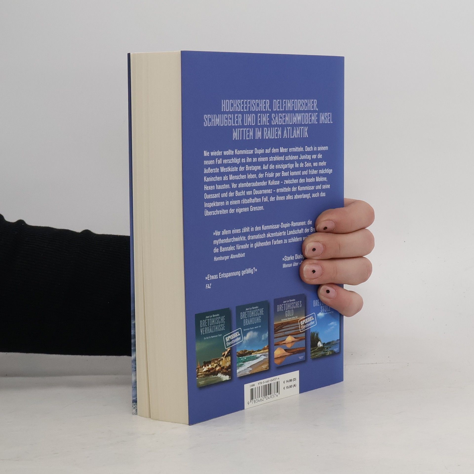 Hochseefischer, Delfinforscher, Schmuggler und eine sagenumwobene Insel im rauen Atlantik bilden den Hintergrund für Kommissar Dupins fünften Fall, der ihn an seine Grenzen bringt. Obwohl er nie wieder auf dem Meer ermitteln wollte, führt ihn sein neuer Fall vor die Westküste der Bretagne, zur einzigartigen Île de Sein, wo mehr Kaninchen als Menschen leben und der Frisör per Boot kommt. Am Tag nach der keltischen Sommersonnenwende, nur zwei Tage vor dem 75. Geburtstag seiner Mutter, steht Dupin bis zu den Knöcheln in Fischabfällen. In der Auktionshalle von Douarnenez wird die Leiche einer Fischerin gefunden, deren Kehle durchtrennt ist. Sie stammt von der Île de Sein und kämpfte gegen die Zerstörung der Meere und mächtige Hochseepiraten. Am selben Morgen erreicht Dupin ein Hilferuf von der Insel: Eine zweite Leiche wurde entdeckt. Zusammen mit seinen Inspektoren ermittelt Dupin unter Hochdruck. Die stolzen Menschen des Meeres bilden eine eingeschworene Gemeinschaft, und die Spuren führen in viele Richtungen. Gibt es Hinweise auf illegale Aktivitäten im Parc Iroise, dem maritimen Naturschutzgebiet, in dem Delphine und Wale leben? Und was ist vom Mythos der versunkenen Stadt zu halten, von dem die Insulaner erzählen?