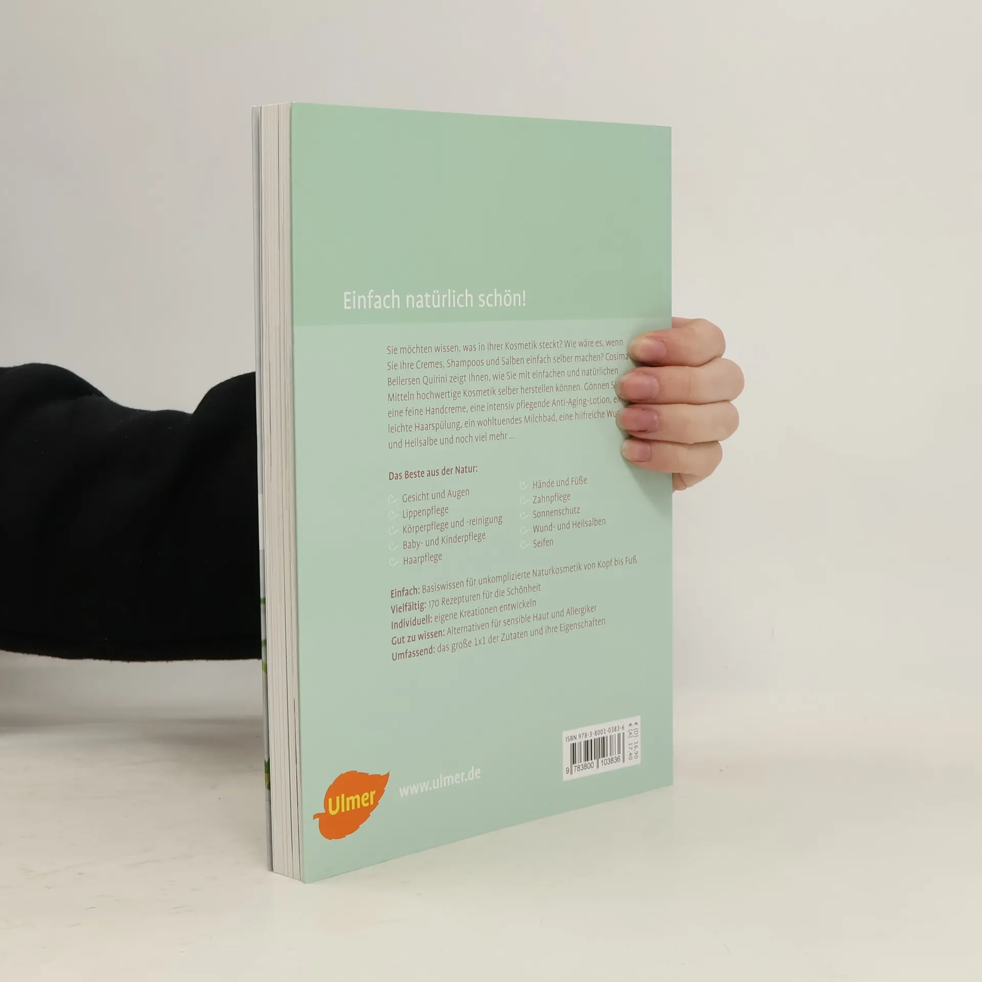 Wissen was drin ist: Naturkosmetik selber machen mit Gutem aus der Natur! Die erfahrene Autorin zeigt in ihrem Buch, wie Sie mit einfachen Mitteln und viel Genuss hochwertige Cremes, Shampoos, Gelee, Salben und vieles mehr selbst herstellen können – für die Babypflege, Gesichts- und Augenpflege, Nagel- und Handpflege. Ob Sonnencreme, Zahnpasta, Handcreme, Seife, Shampoo, Gesichtsmaske oder Peeling selber machen: über 150 Rezepte und viele Tipps sorgen für sicheres Gelingen. Naturkosmetik einfach selbst gemacht. Von Shampoo bis Fußbalsam.