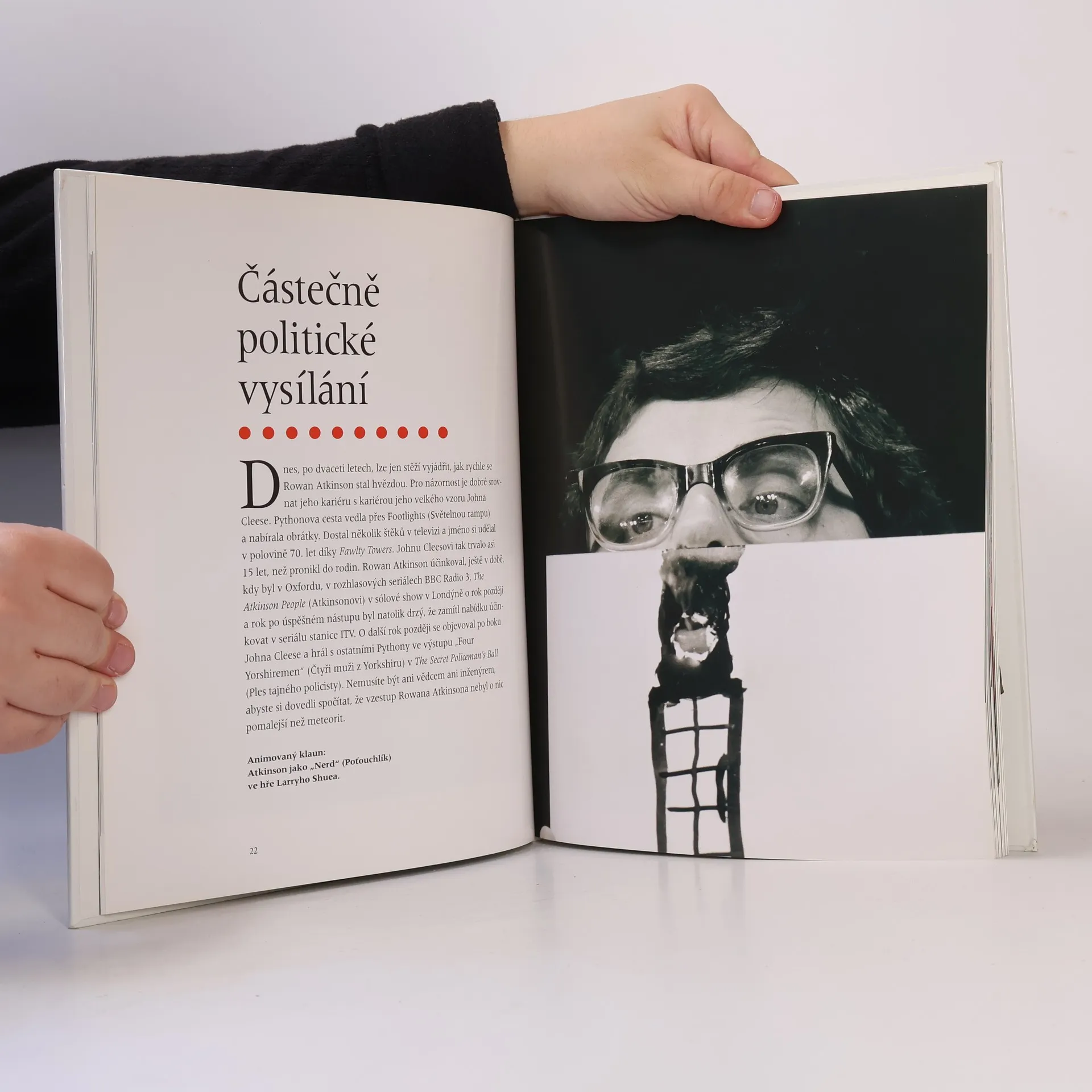 Kniha o filmové a divadelní kariéře anglického herce Rowana Atkinsona. Kniha s mnoha barevnými ilustracemi na křídovém papíru se podrobně věnuje filmové a divadelní práci anglického herce Rowana Atkinsona, kterého znají především diváci jednoho z nejpopulárnějších britských televizních seriálů Černá zmije nebo série filmů o oblíbené postavě Panu Beanovi. V českém prostředí knížka předpokládá čtenáře se značnou znalostí pořadů britské či americké televize.