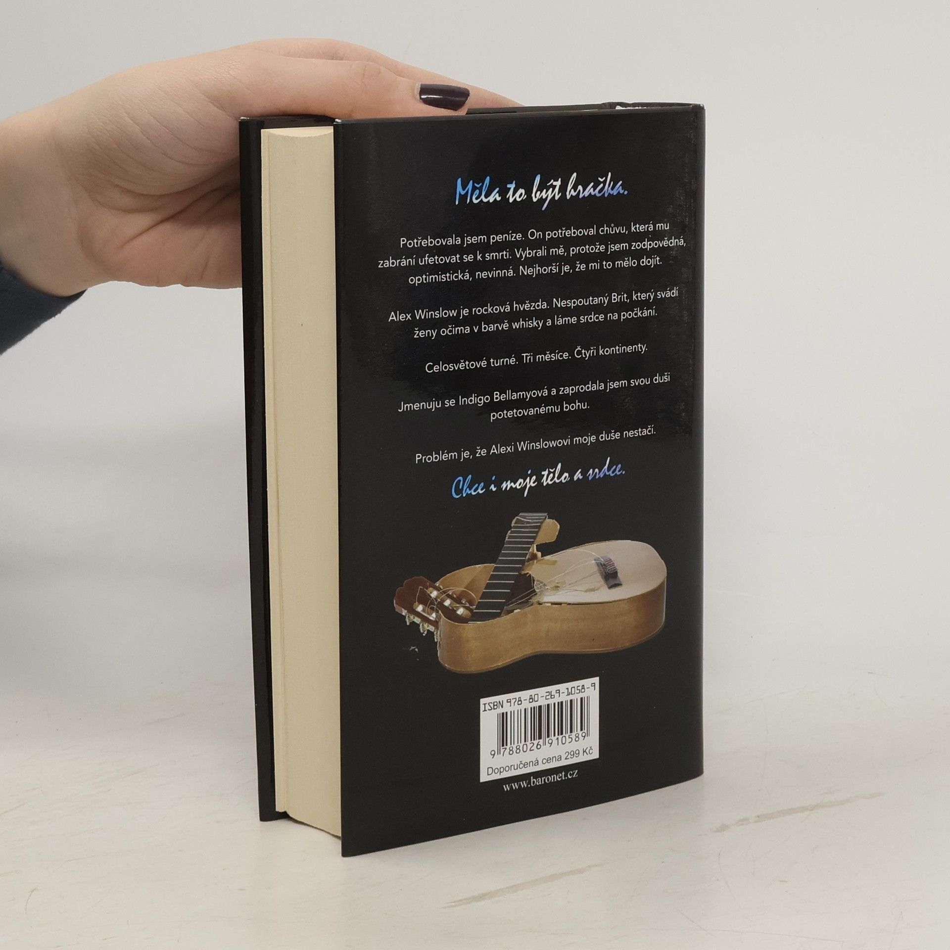 Indigo Bellamyová je pro svou novou práci jako stvořená. Je zodpovědná, optimistická, nevinná. Mělo jí dojít, že práce osobní asistentky slavného rockera nebude procházka růžovým sadem. Alex Winslow je rocková hvězda. Nespoutaný Brit, který svádí ženy očima v barvě whisky a láme srdce na počkání. Celosvětové turné. Tři měsíce. Čtyři kontinenty. Sto koncertů. Indigo zaprodala svou duši potetovanému bohovi rocku. Jenže Alexi Winslowovi její duše nestačí. Chce i její tělo a srdce.
