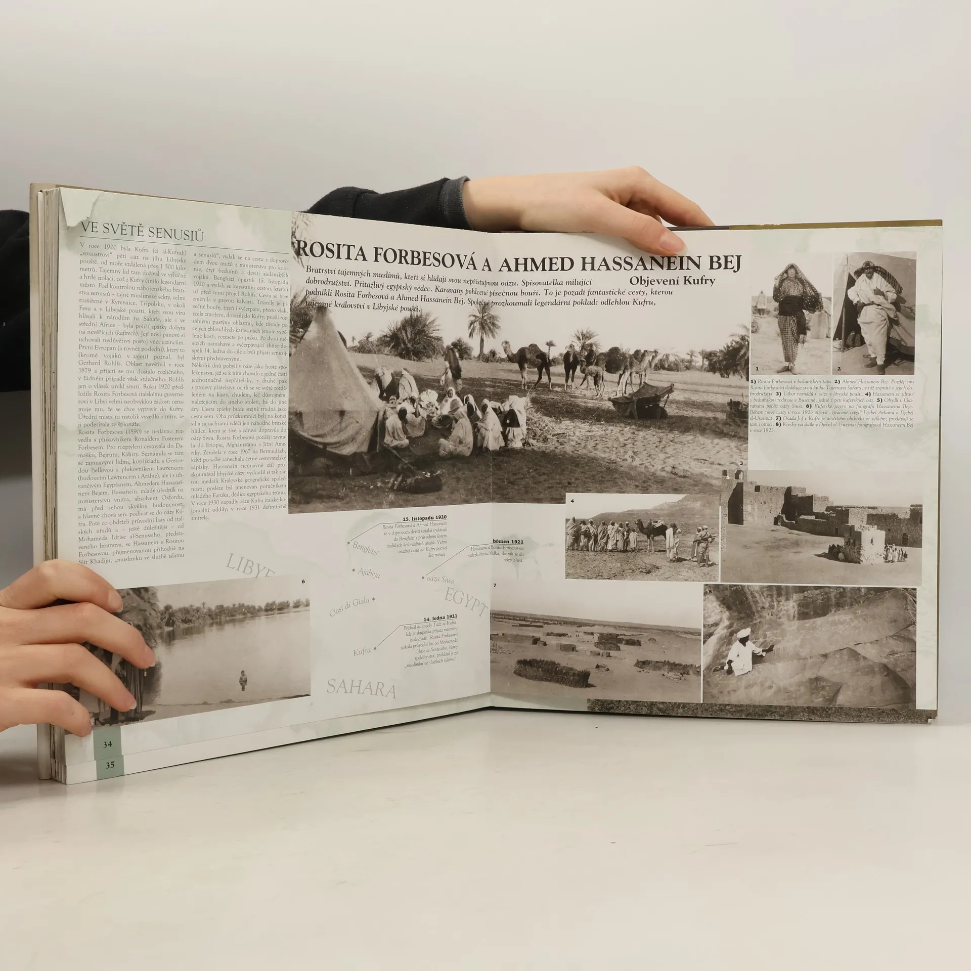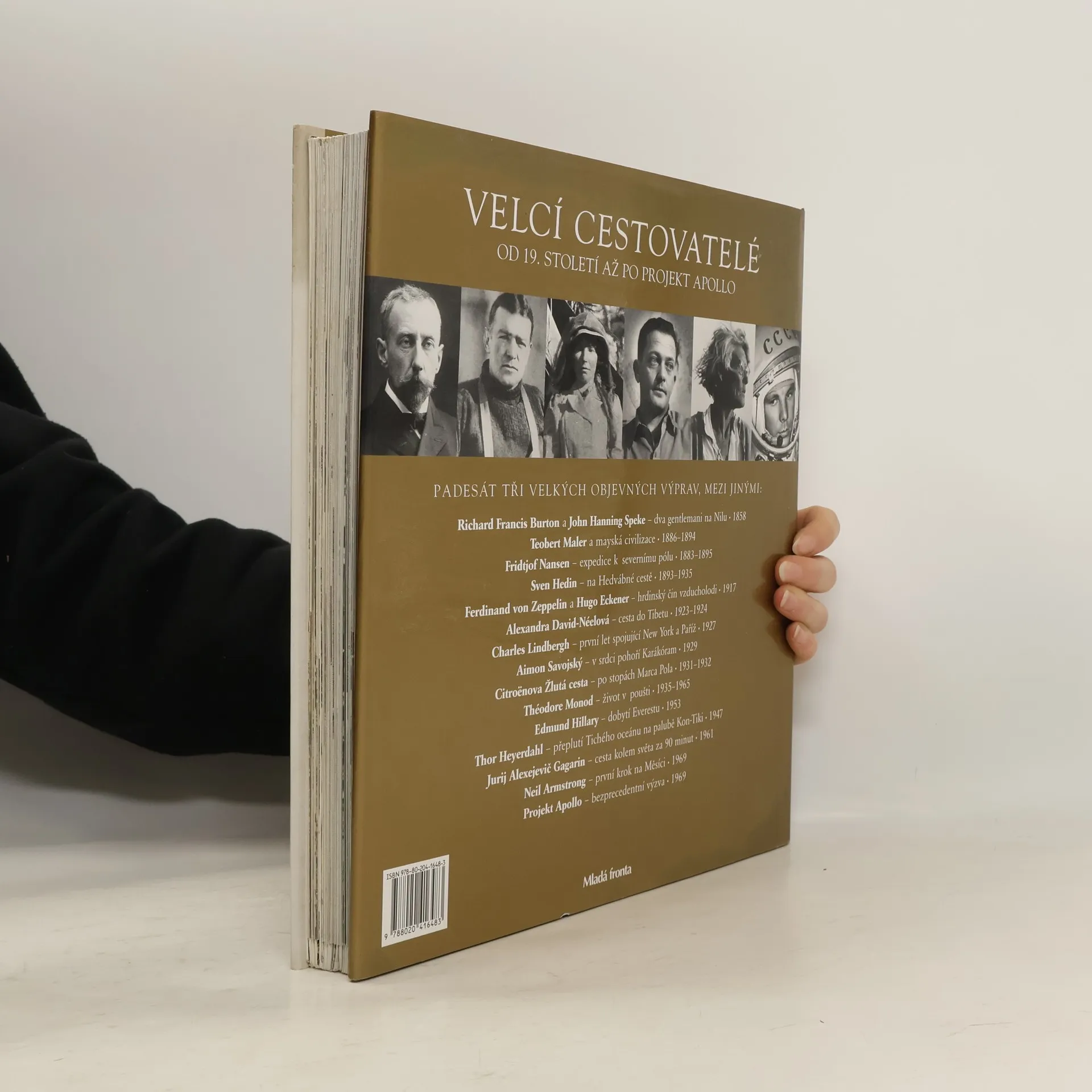 Unikátní obrazová publikace tvořená kapitolami na rozkládacích stranách. Kniha popisuje století zkoumání, 53 objevných výprav (např. expedici k severnímu pólu, slavný Lindbergův let, dobytí Everestu...) od vzniku fotografie až po dobytí Měsíce. Každá strana je ilustrovaná výjimečnými archivními dokumenty, dobovými fotografiemi, obrázky, mapami. Ty všechny jsou doplněny biografií cestovatele a podrobnostmi jeho nejvýznamnější mise.