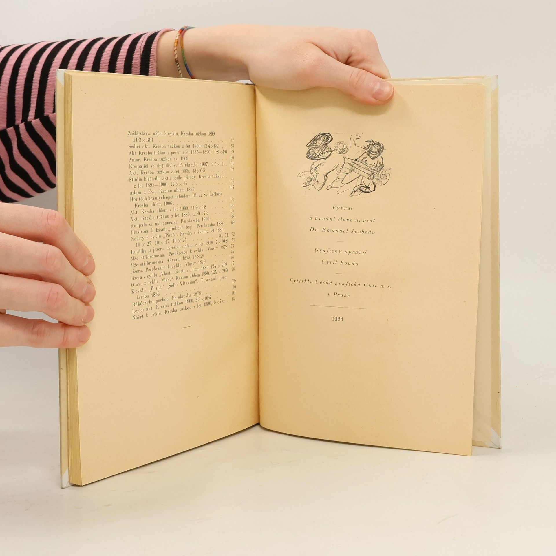 Kniha přibližuje malíře jako obdivovatele ženské krásy, na kterou se dívá jako na půvabný výtvor přírody. Obsahuje výběr aktů z jeho obsáhlé tvorby, ale i samostatné kresby a náčrty ženského těla. Obsáhlou předmluvu o malířových aktech napsal Dr. Emanuel Svoboda.
