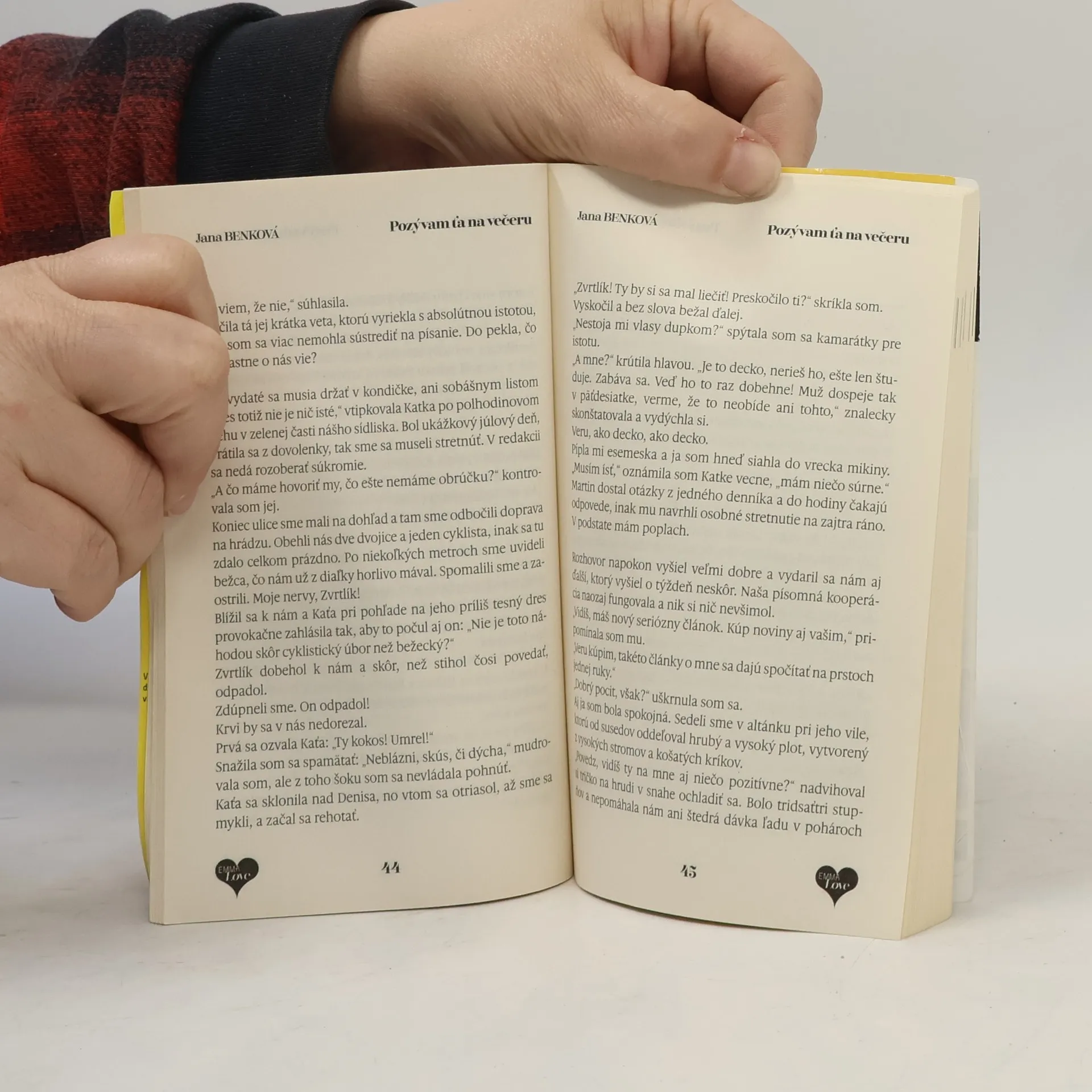 Strhujúci príbeh novinárky a známeho hokejistu. „Príbeh je o tom, že láska nám môže skrížiť cestu naozaj kedykoľvek a kdekoľvek. O tom, že sa netreba trápiť pochybnosťami, ktoré my, ženy, máme takmer vo všetkom. Nebojme sa aj zariskovať a veriť, vychutnávať si každý krásny deň, láska pritiahne všetko pozitívne, pokojne to nechajte na ňu,“ hovorí Jana Benková, ktorá do príbehu hlavnej hrdinky Zuzany namixovala nielen veľa lásky, ale aj prekvapenia a úsmevné postavičky, aké bežná žena vo svojom živote stretáva pravidelne. Kniha "Pozývam ťa na večeru" je už 13. román, ktorý vychádza v spolupráci s magazínom EMMA.