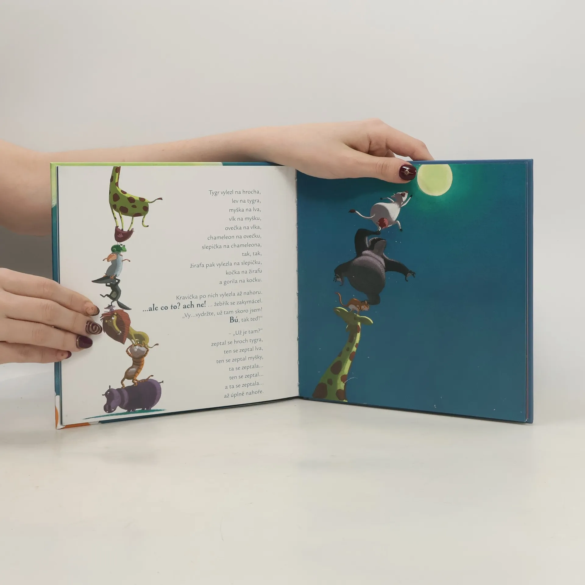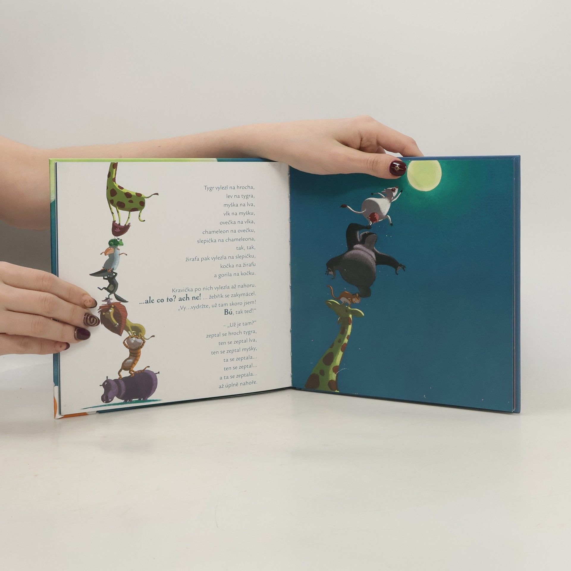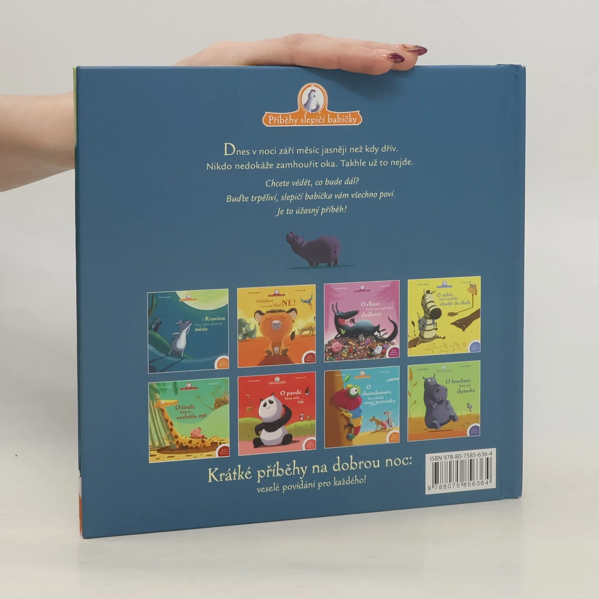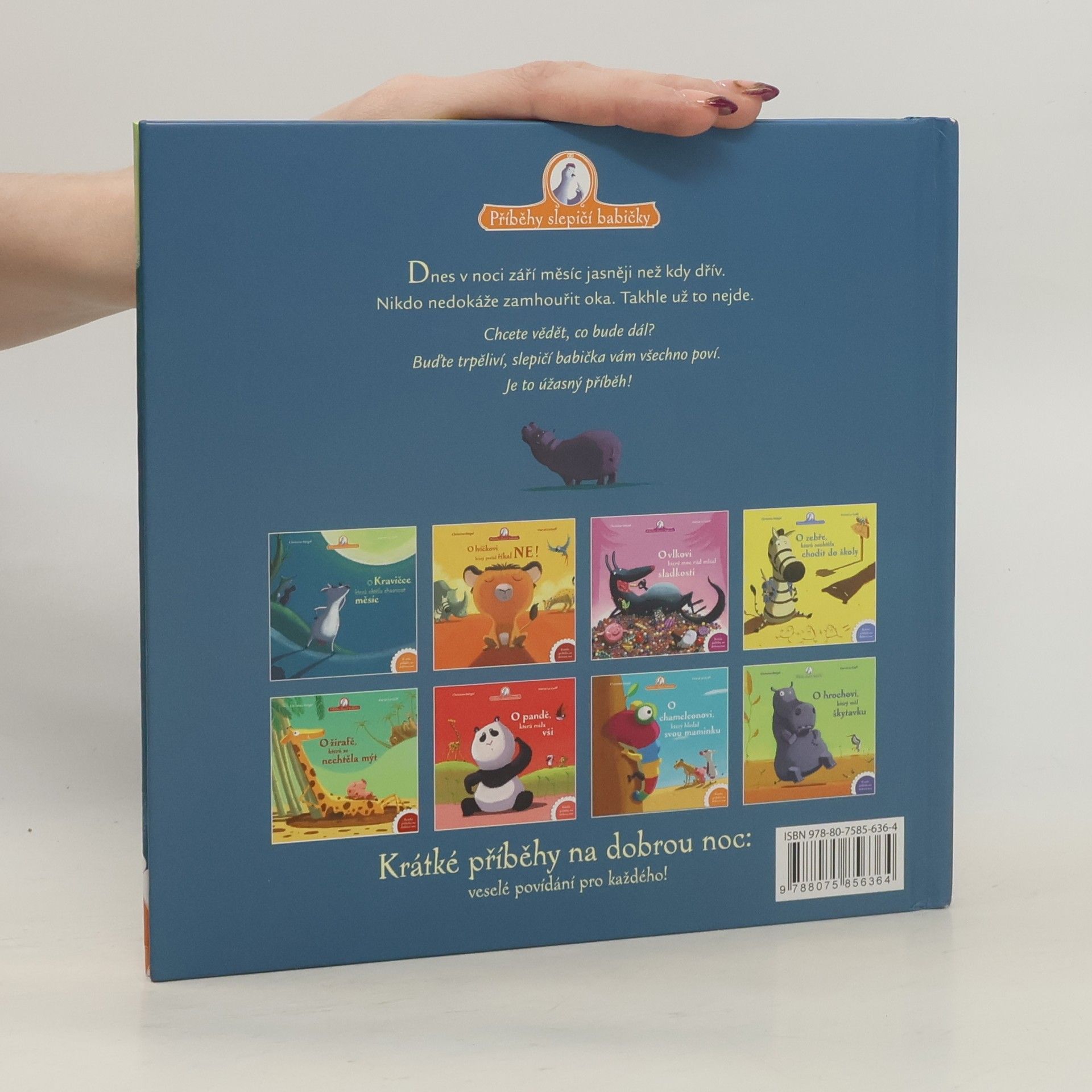 Zvířátka jednoho dne nemohla usnout a nevěděla, co si počít. Až kravičku napadlo řešení: musíme zhasnout měsíc! Jak se jim to podařilo a co všechno pro to musela udělat? To se dozvíte v Příbězích slepičí babičky.