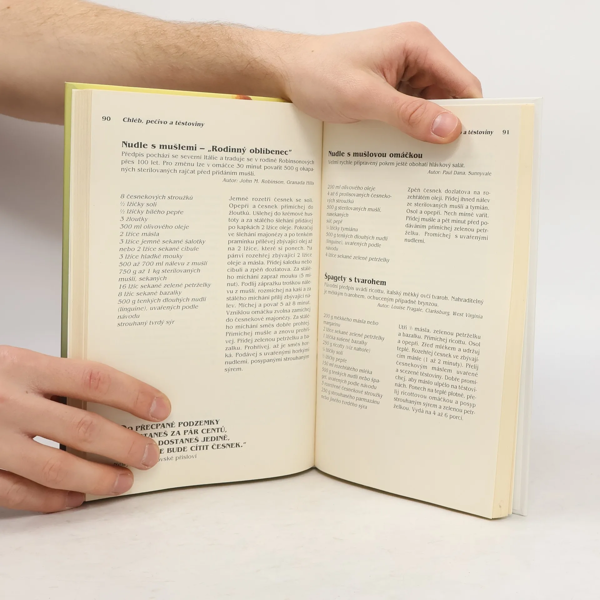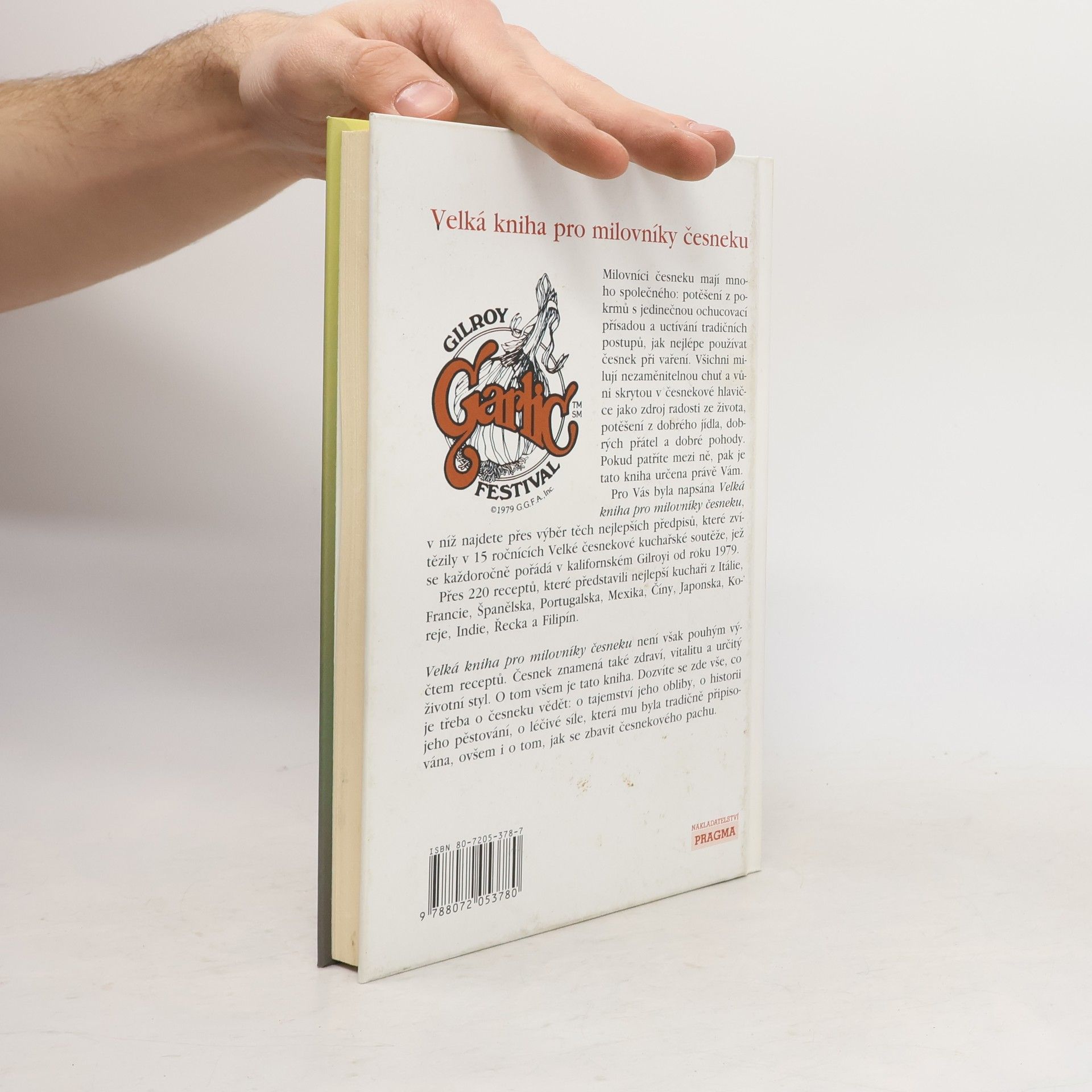 Obsahuje vítězné předpisů z 15 ročníků kuchařských soutěží v kalifornské česnekářské metropoli Gilroy. *** Více než 220 receptů od nejlepších kuchařů z Itálie, Francie, Španělska, Portugalska, Mexika, Číny, Japonska, Koreje, Indie, Řecka a Filipín, které zvítězily v patnácti ročnících Velké česnekové kuchařské soutěže, nejsou jen pouhým výčtem předpisů. Česnek znamená zdraví, vitalitu a určitý životní styl. Dozvíte se zde vše, co je třeba o česneku vědět: o tajemství jeho obliby, o historii jeho pěstování, o léčivé síle, která mu byla tradičně připisována, i tom, jak se zbavit česnekového pachu. ISBN 978-80-7205-378-0 (dotisk 2010)