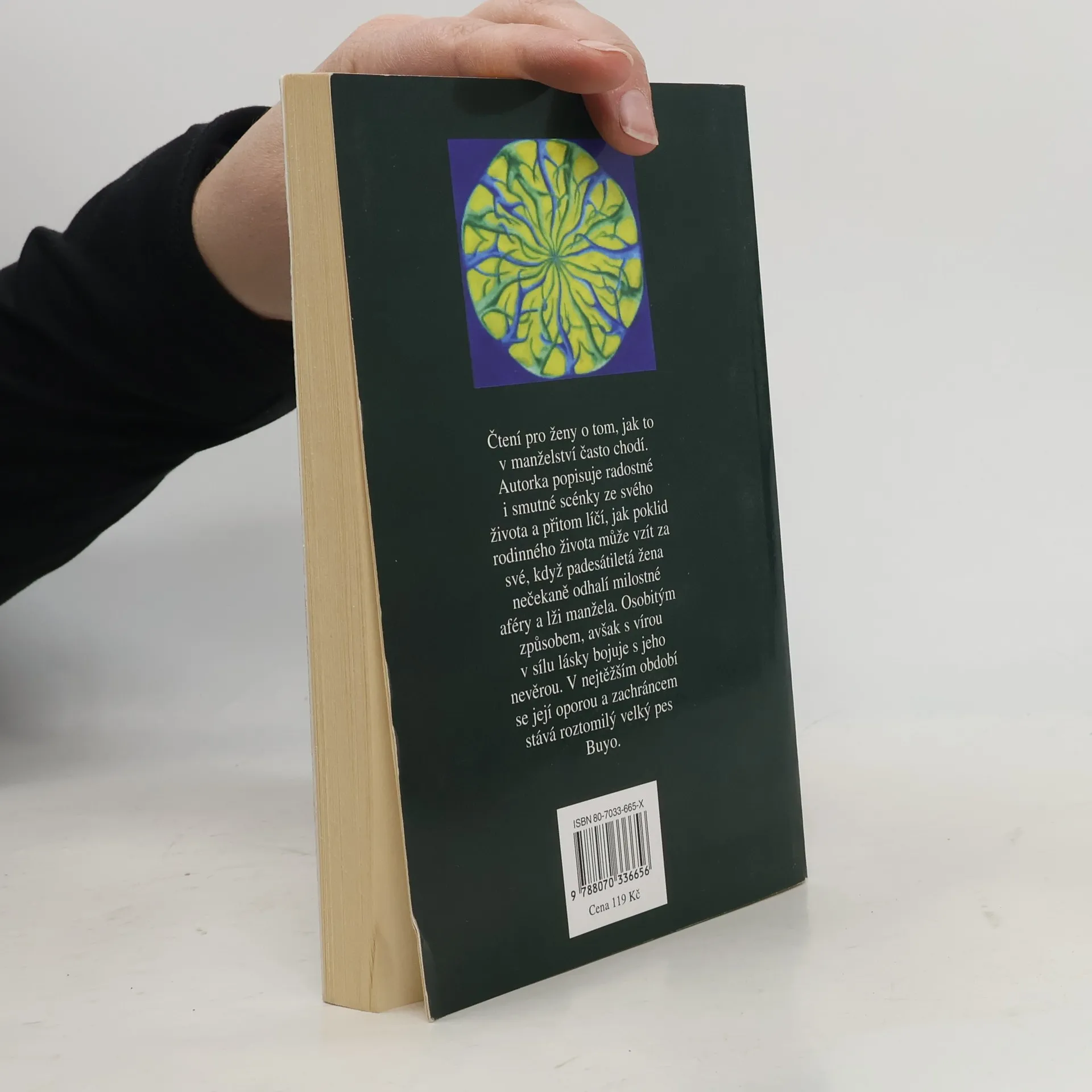 Čtení pro ženy o tom, jak to v manželství často chodí. Autorka popisuje radostné i smutné scénky ze svého života a přitom líčí, jak poklid rodinného života může vzít za své, když padesátiletá žena nečekaně odhalí milostné aféry a lži manžela. Osobitým způsobem, avšak s vírou v sílu lásky bojuje s jeho nevěrou. V nejtěžším období se její oporou a zachráncem stává roztomilý velký pes Buyo.