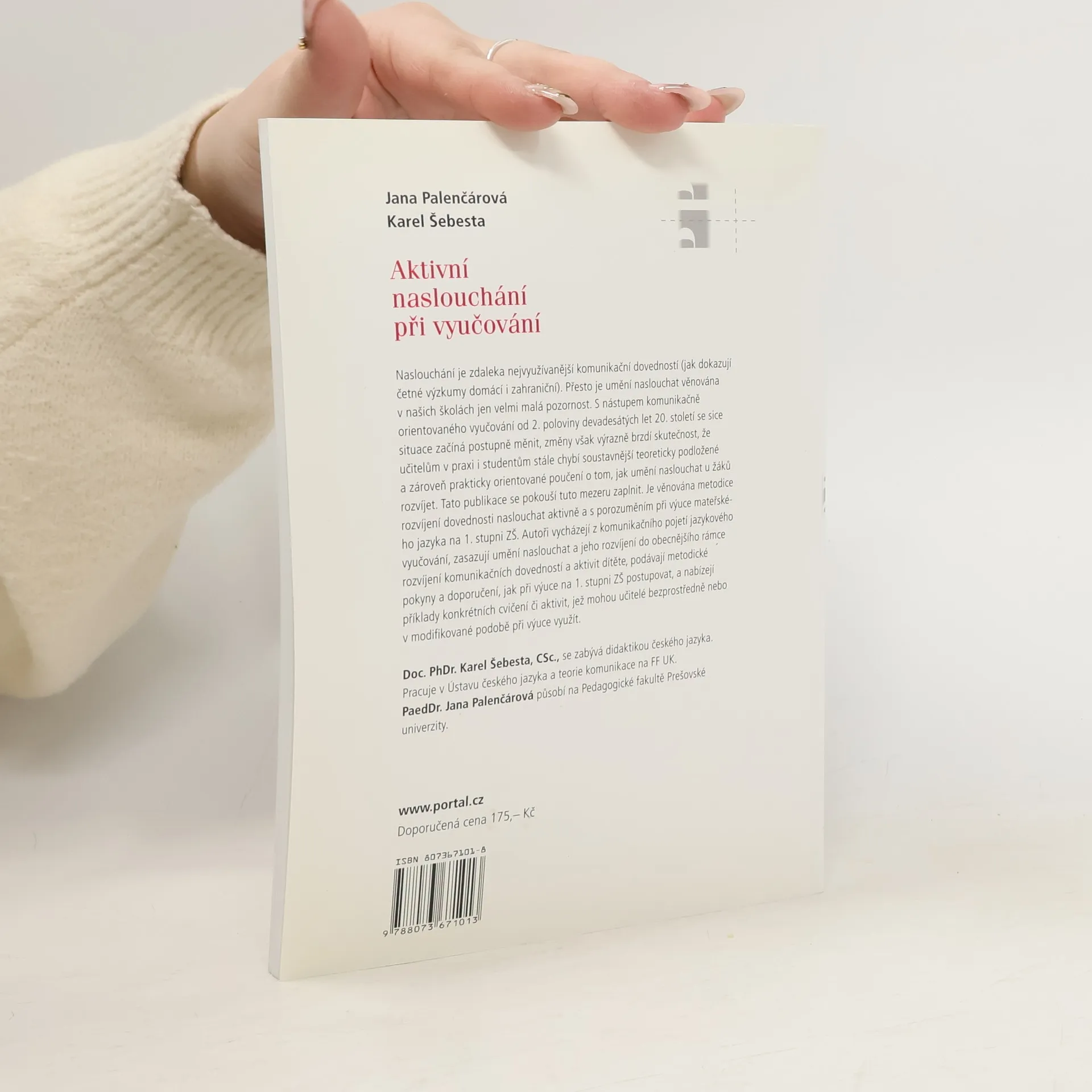 Naslouchání je zdaleka nejvyužívanější komunikační dovedností. To dokazují i četné domácí a zahraniční výzkumy, přesto je umění naslouchat věnována v našich školách jen velmi malá pozornost. S nástupem komunikačně orientovaného vyučování od druhé poloviny devadesátých let 20. století se sice si-tuace začíná postupně měnit, změny však výrazně brzdí skutečnost, že učitelům v praxi i studentům stále chybí soustavnější teoreticky podložené a zároveň prakticky orientované poučení o tom, jak umění naslouchat u žáků rozvíjet. Tato publikace se pokouší tuto mezeru zaplnit. Je věnována metodice rozvíjení dovednosti naslouchat aktivně a s porozuměním při výuce mateřského jazyka na 1. stupni ZŠ. Autoři vycházejí z komunikačního pojetí jazykového vyučování, zasazují umění naslouchat a jeho rozvíjení do obecnějšího rámce rozvíjení komunikačních dovedností a aktivit dítěte, podávají metodické pokyny a doporučení, jak při výuce na 1. stupni ZŠ postupovat, a nabízejí příklady cvičení či aktivit, jež mohou učitelé při výuce využít.