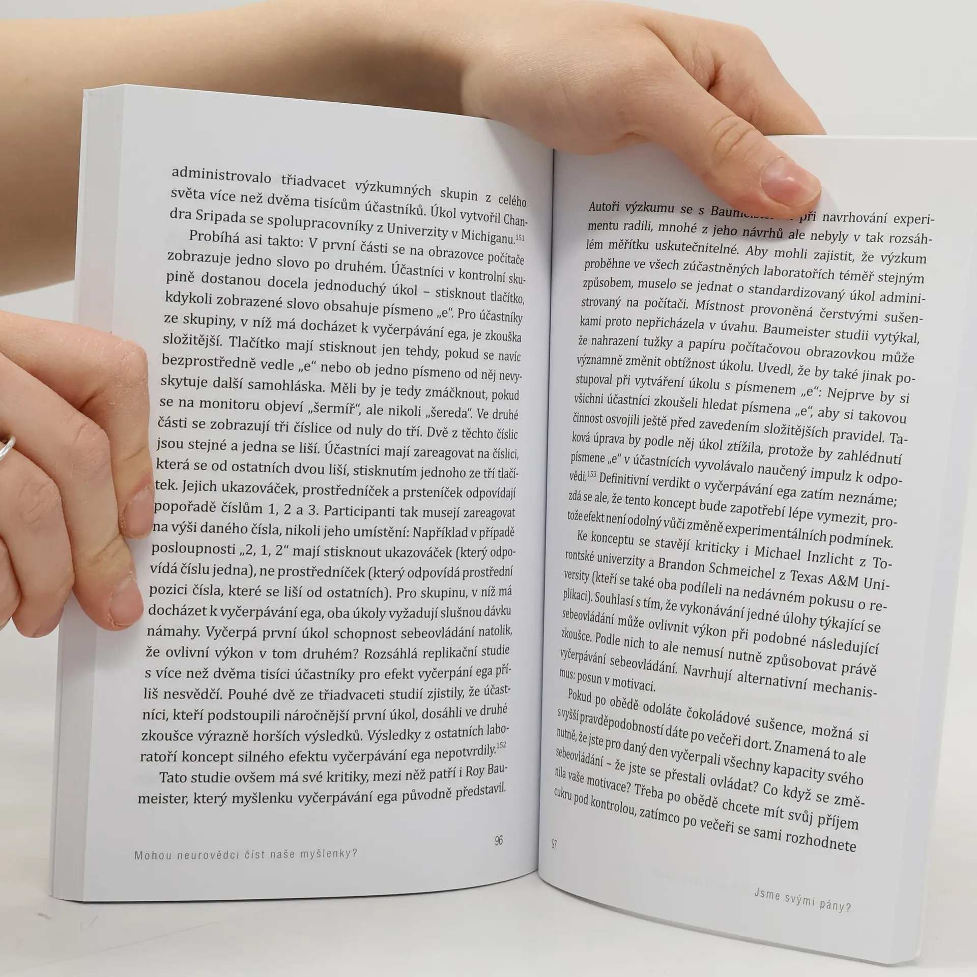 Kniha přináší srozumitelně tlumočený souhrn aktuálních poznatků v řadě oblastí, které z oblasti neurovědeckého výzkumu pronikly do společenské diskuse. To, že se indický soud zabýval posuzováním důkazu založeného na neurologické metodě detekování lži, proběhlo před pár lety snad všemi českými médii. Jak to dopadlo? Umíme lež odhalit? A co si s tím počít z hlediska práva? Právě to rozebírají dvě z kapitol – a s neméně zajímavými tématy přicházejí i ty ostatní. Máme v mozku zakódovaný rasismus? Morálku? A co neuromarketing – mohou nás marketingoví odborníci díky znalosti mozku ovládat? Je možné obsah mozku v podstatě přečíst? A zbývá nám vůbec něco víc než slepě následovat nervové procesy? Většinu z odpovědí neznáme. Autoři tak „pouze“ staví podobné úvahy na pevnou půdu současného výzkumu a srozumitelně vysvětlují zásadní experimenty počátku tisíciletí a společenské otázky, které z nich vyplývají. (Činí tak věcně a kriticky – čtenáře neinfikují svými názory, ale vybavují informacemi pro vytvoření vlastních závěrů. Publikaci končí střízlivým shrnutím, jaký technologický přínos lze od neurověd očekávat v následujících letech. Díky tomu, že se autoři soustředí výhradně na současný stav poznání, je každá stránka plná nových informací i pro poučeného čtenáře, kterému zároveň vysvětluje i metodologická úskalí některých experimentů.)