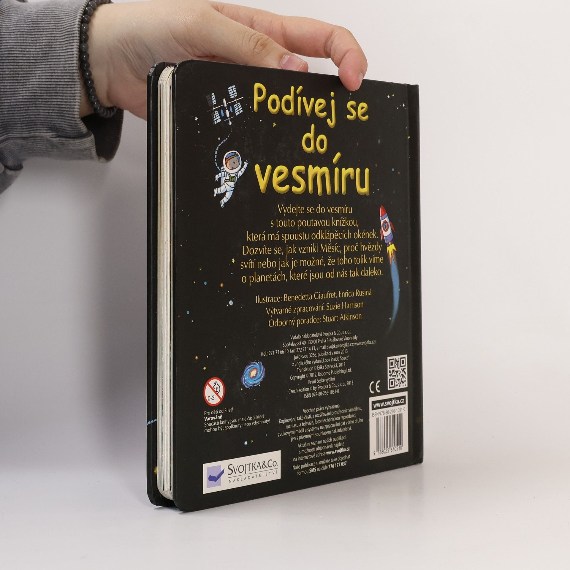 Podívejte se s touto dětskou encyklopedickou knížkou s odklápěcími okénky do vesmíru! Pod každým z více než 70 okének najdete odpovědi na nejčastější otázky, které se tohoto tématu týkají - například jak vznikl Měsíc, proč hvězdy svítí nebo jak je možné, že toho tolik víme o planetách, které jsou od nás tak daleko. Získávání informací a učení nemusí být nuda. S touto knížkou to půjde tak snadno!