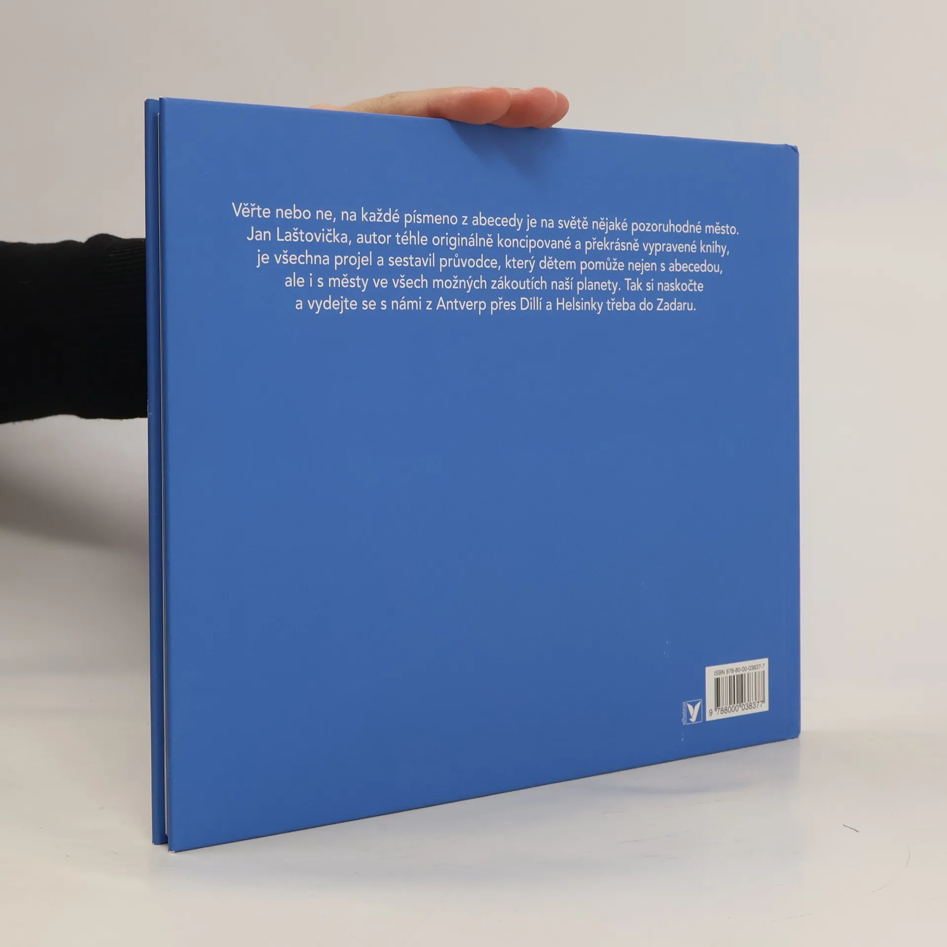 Věřte nebo ne, na každé písmeno z abecedy je na světě nějaké pozoruhodné město. Jan Laštovička, autor téhle originálně koncipované a překrásně vypravené knihy, je všechna projel a sestavil průvodce, který dětem pomůže nejen s abecedou, ale i s městy ve všech možných zákoutích naší planety. Tak si naskočte a vydejte se s námi z Antverp přes Dillí a Helsinky třeba do Zadaru. Ilustrace Jana Laštovičky jsou jemné a do detailů propracované, ale zároveň obsahují určitou nadsázku, která je zpřístupňuje dětským čtenářům. Nápadité předěly a jednotně vyřešené dvoustrany propůjčují knize neobvyklou eleganci.