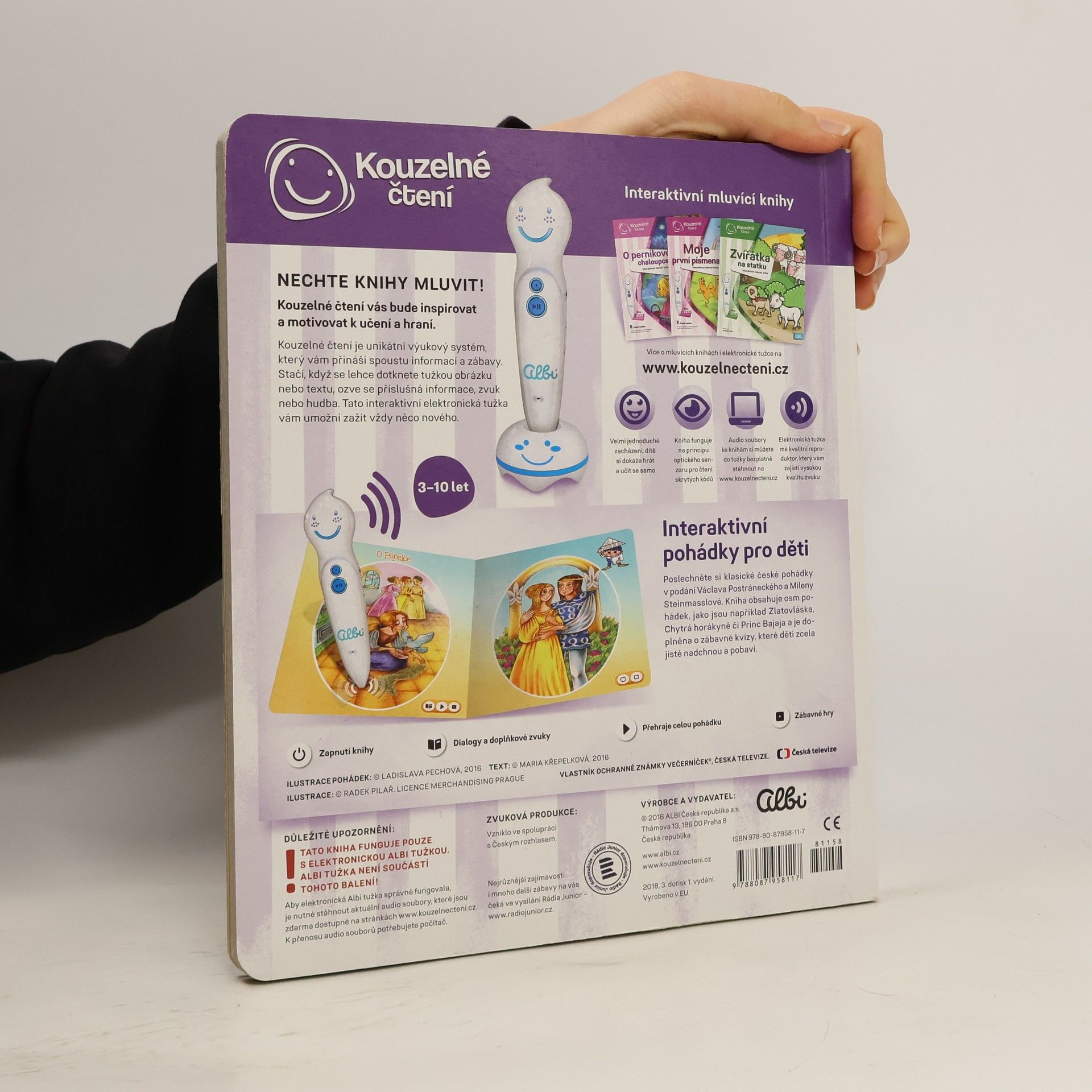 Kouzelné pohádky s ALBI tužkou Poslechněte si klasické české pohádky v podání Václava Postráneckého a Mileny Steinmasslové. Kniha obsahuje osm pohádek - mezi nimi například pohádky Zlatovláska, Tři zlaté vlasy děda Vševěda, O Popelce, Chytrá horákyně a další. Kniha je doplněna o zábavné kvízy, které děti zcela jistě nadchnou a zabaví na dlouhou dobu. Kniha kouzelných pohádek obsahuje přes 400 zvuků a textů, vznikla ve spolupráci s Českým rozhlasem a namluvili Václav Postránecký, Milena Steinmasslová, Lenka Krupanská a René Krupanský.