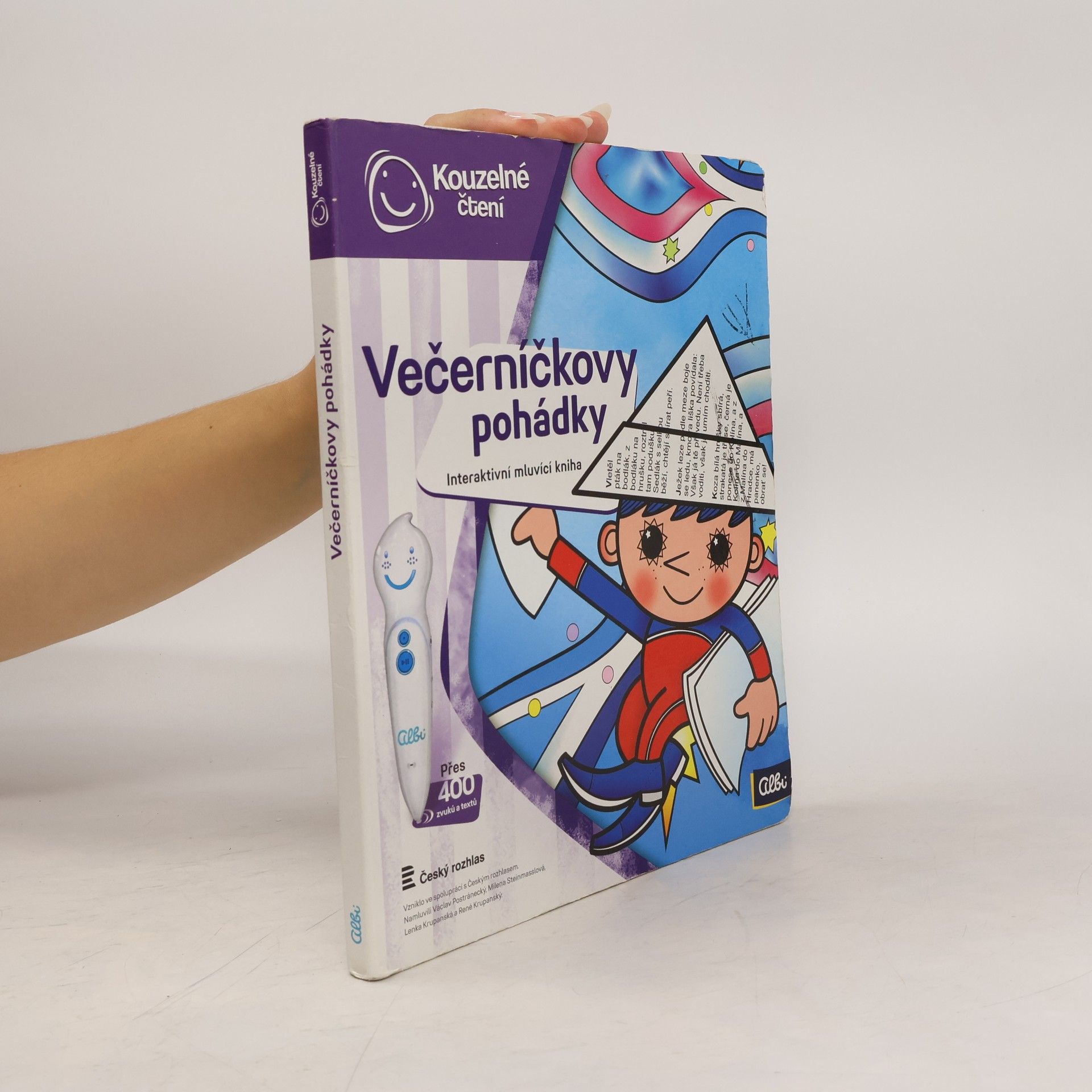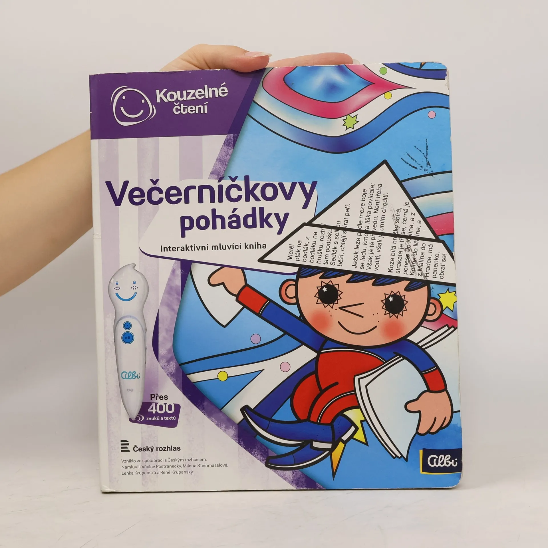 Kouzelné pohádky s ALBI tužkou Poslechněte si klasické české pohádky v podání Václava Postráneckého a Mileny Steinmasslové. Kniha obsahuje osm pohádek - mezi nimi například pohádky Zlatovláska, Tři zlaté vlasy děda Vševěda, O Popelce, Chytrá horákyně a další. Kniha je doplněna o zábavné kvízy, které děti zcela jistě nadchnou a zabaví na dlouhou dobu. Kniha kouzelných pohádek obsahuje přes 400 zvuků a textů, vznikla ve spolupráci s Českým rozhlasem a namluvili Václav Postránecký, Milena Steinmasslová, Lenka Krupanská a René Krupanský.
