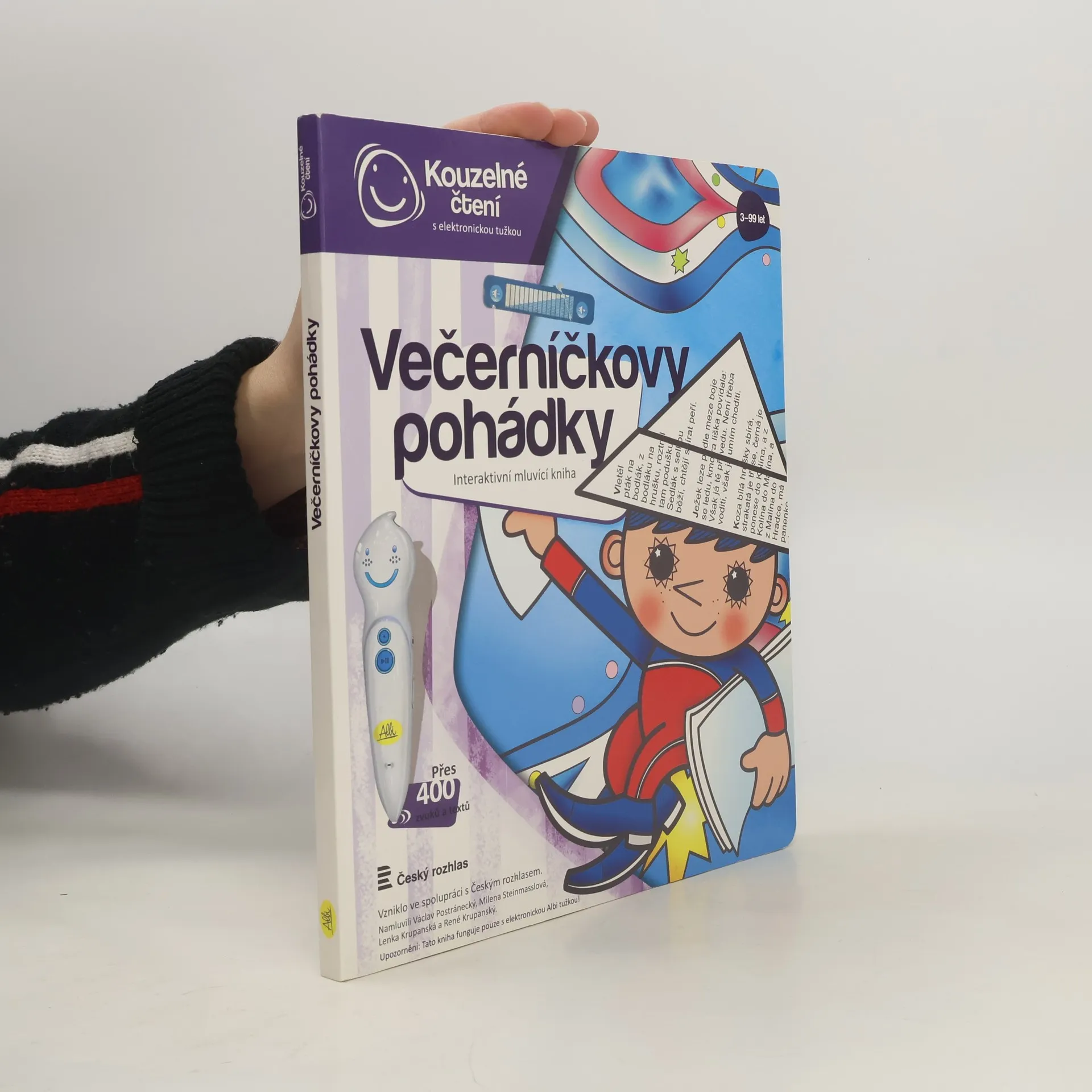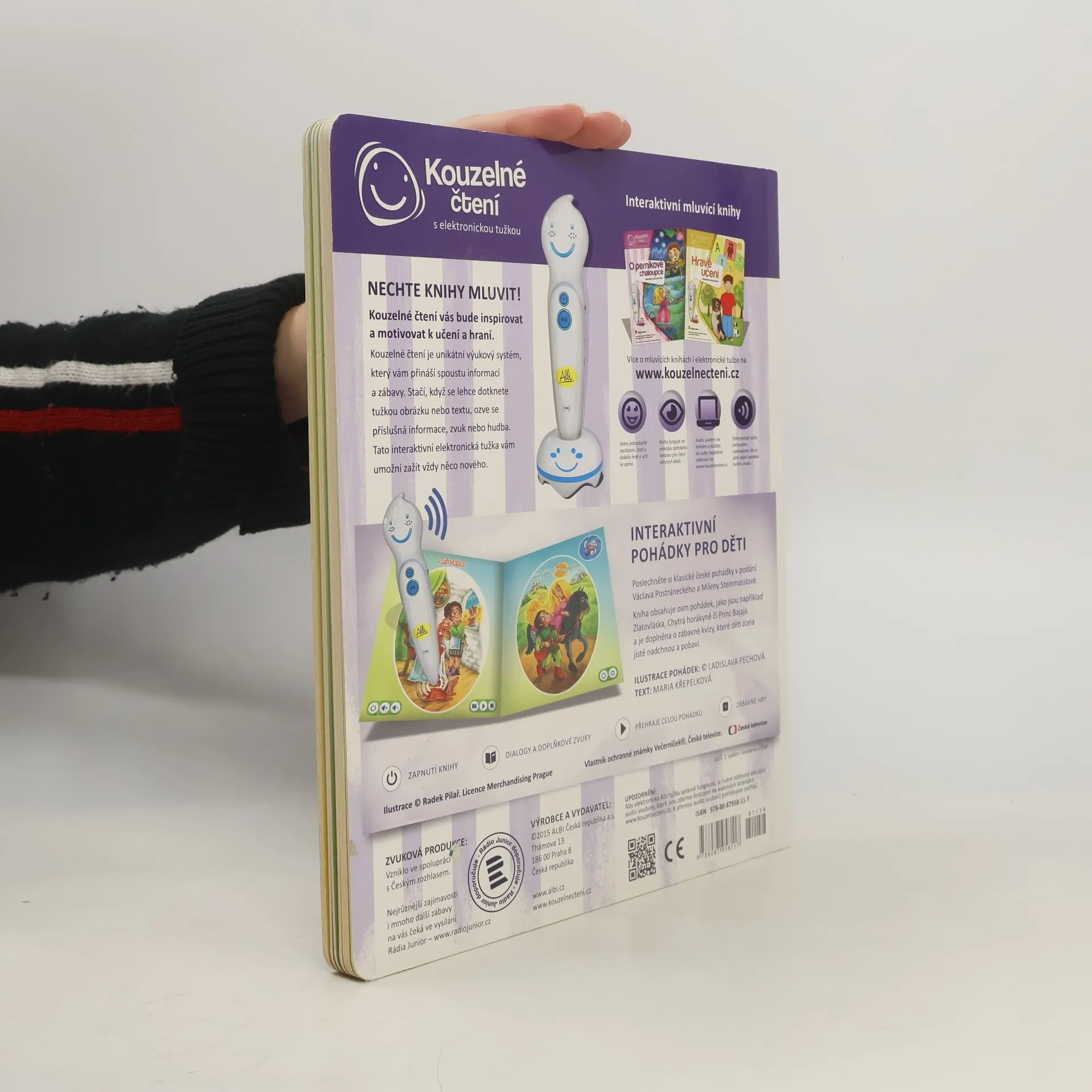 Kouzelné pohádky s ALBI tužkou Poslechněte si klasické české pohádky v podání Václava Postráneckého a Mileny Steinmasslové. Kniha obsahuje osm pohádek - mezi nimi například pohádky Zlatovláska, Tři zlaté vlasy děda Vševěda, O Popelce, Chytrá horákyně a další. Kniha je doplněna o zábavné kvízy, které děti zcela jistě nadchnou a zabaví na dlouhou dobu. Kniha kouzelných pohádek obsahuje přes 400 zvuků a textů, vznikla ve spolupráci s Českým rozhlasem a namluvili Václav Postránecký, Milena Steinmasslová, Lenka Krupanská a René Krupanský.