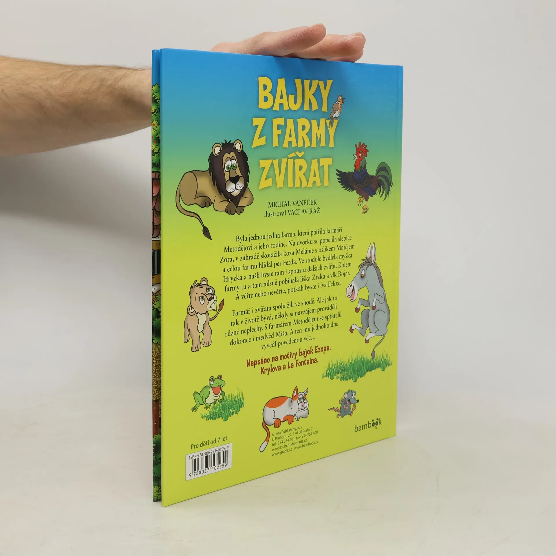 Byla jednou jedna farma, která patřila farmáři Metodějovi a jeho rodině. Na dvorku se popelila slepice Zora, v zahradě skotačila koza Melánie s oslíkem Matějem a celou farmu hlídal pes Ferda. Ve stodole bydlela myška Hryzka a našli byste tam i spoustu dalších zvířat. Kolem farmy tu a tam mlsně pobíhala liška Zrzka a vlk Bojar. A věřte nebo nevěřte, potkali byste i lva Felixe. Farmář i zvířata spolu žili ve shodě. Ale jak to tak v životě bývá, někdy si navzájem prováděli různé neplechy. S farmářem Metodějem se spřátelil dokonce i medvěd Míša. A ten mu jednoho dne vyvedl povedenou věc… Napsáno na motivy bajek Ezopa, Krylova a La Fontaina.