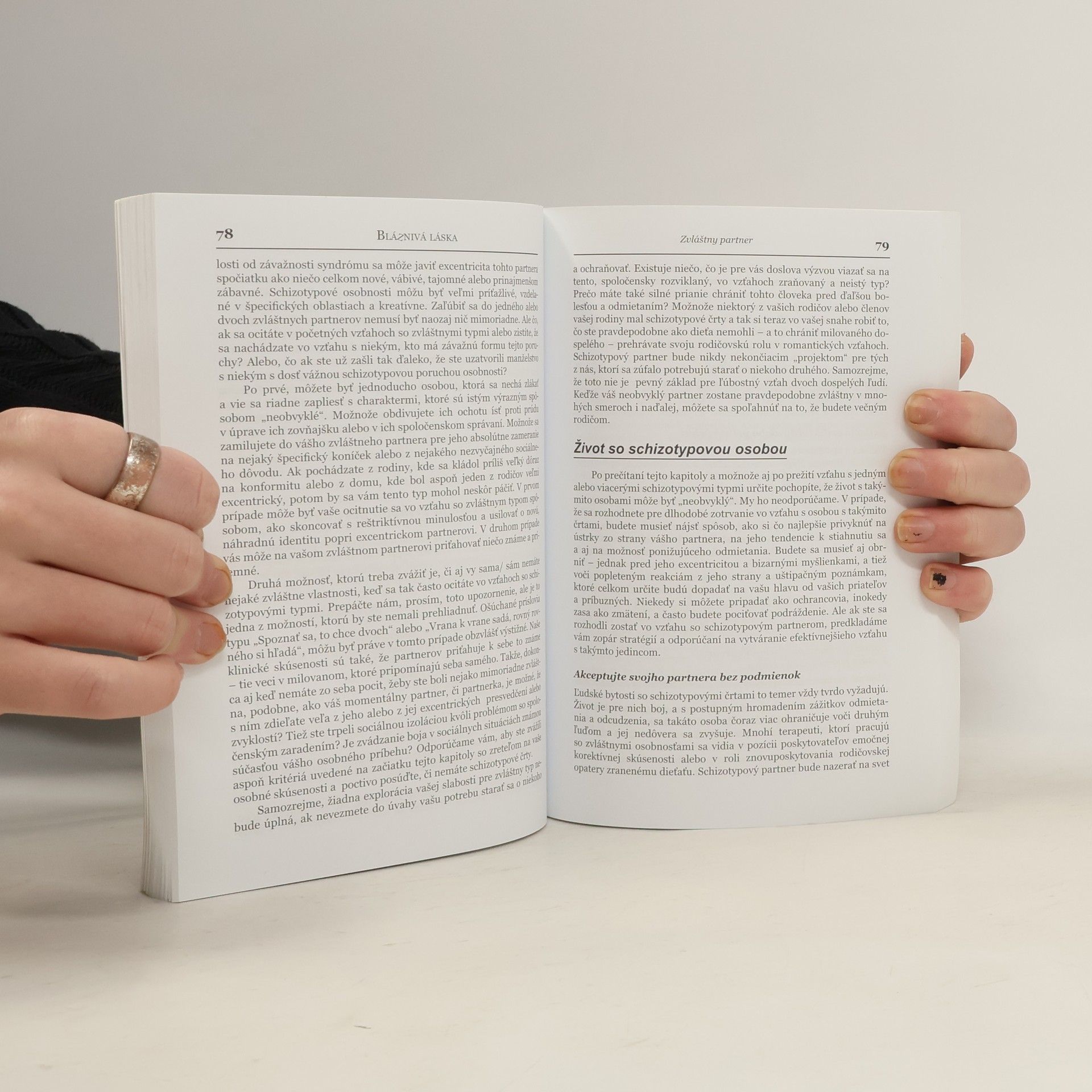 Príbeh začína stretnutím s niekým novým, šarmantným a príjemným, do koho sa zamilujete. Netrvá dlho a začnete si všímať jeho neobvyklé návyky a správanie, ktoré postupne odhaľujú vážne osobnostné problémy. Kniha ponúka cenné rady, ako sa vyhnúť potenciálnym katastrofám vo vzťahoch alebo ako ich zvládať, ak sa už ocitnete v ťažkej situácii. Obsahuje stratégie na rozpoznanie problematických osobností, výber správneho partnera a hľadanie zdravých vzťahov. Je to neoceniteľný zdroj informácií pre každého, kto má partnera s narušenou osobnosťou. Odborníci ju odporúčajú ako povinné čítanie pre tých, ktorí túžia po zdravých vzťahoch, a pre terapeutov, ktorí ju potrebujú mať vo svojej knižnici. Kniha je detailná a sofistikovaná, no zároveň veľmi čitateľná a prístupná. Poskytuje mimoriadne hodnotné informácie pre terapeutov, rodinných príslušníkov a partnerov osôb trpiacich poruchou osobnosti, čím sa stáva vynikajúcim nástrojom na pomoc v náročných situáciách.