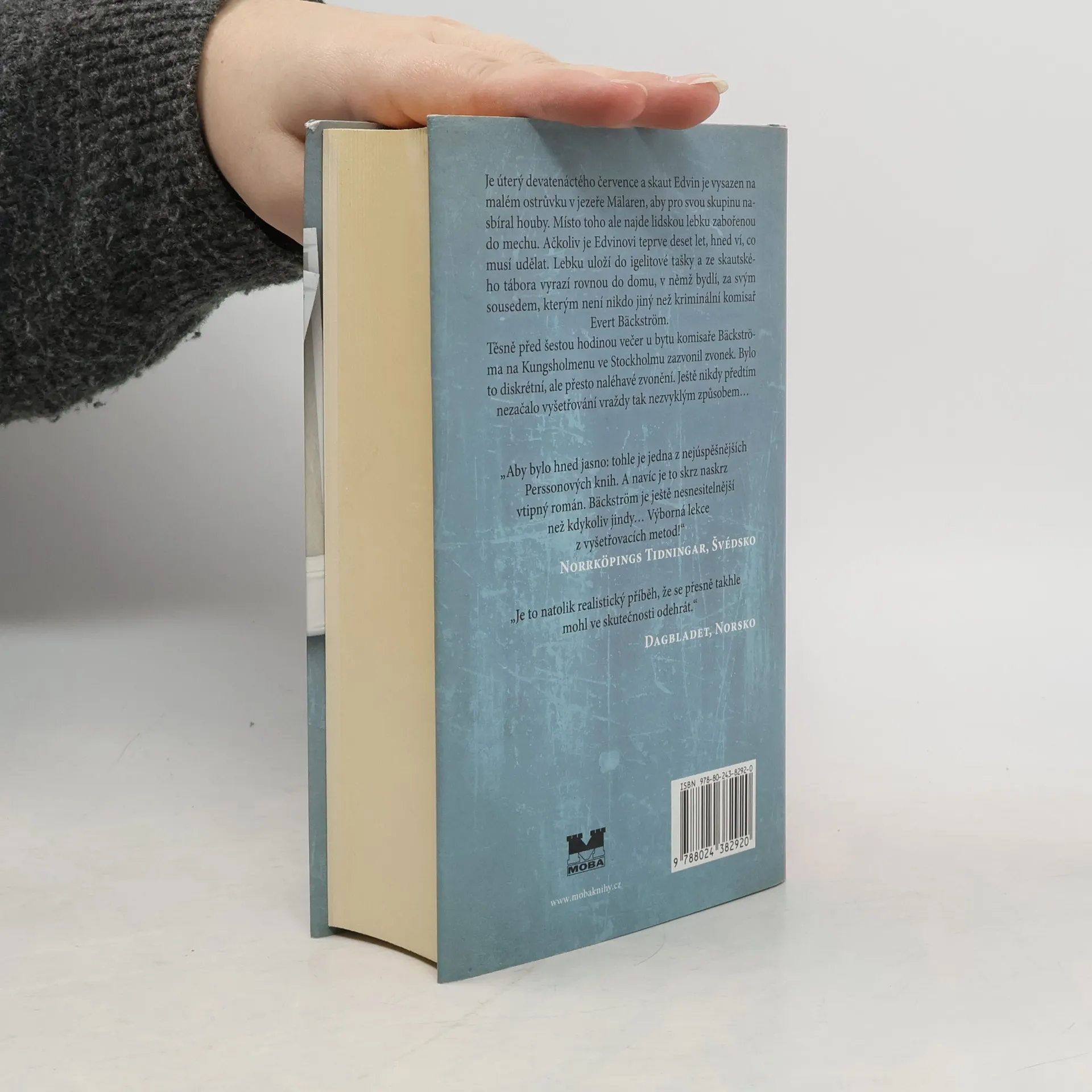Je úterý devatenáctého července a skaut Edvin je vysazen na malém ostrůvku v jezeře Mälaren, aby pro svou skupinu nasbíral houby. Místo toho ale najde lidskou lebku zabořenou do mechu. Ačkoliv je Edvinovi teprve deset let, hned ví, co musí udělat. Lebku uloží do igelitové tašky a ze skautského tábora vyrazí rovnou do domu, v němž bydlí, za svým sousedem, kterým není nikdo jiný než kriminální komisař Evert Bäckström. Těsně před šestou hodinou večer zazvonil u bytu komisaře Everta Bäckströma na Kungsholmenu ve Stockholmu zvonek. Bylo to diskrétní, ale přesto naléhavé zvonění. Ještě nikdy předtím nezačalo vyšetřování vraždy tak nezvyklým způsobem…