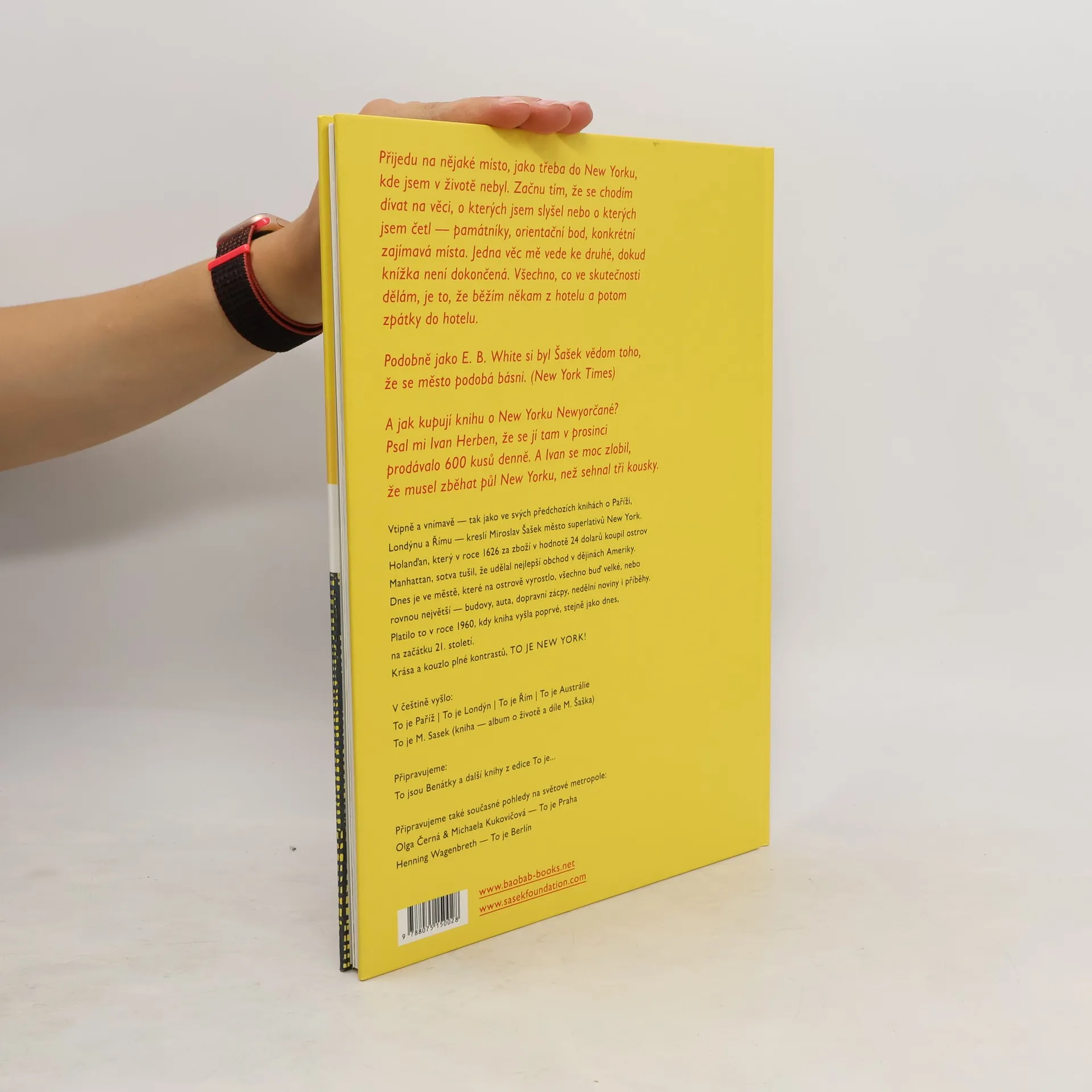 Vtipně a vnímavě — tak jako ve svých předchozích knihách o Paříži, Londýnu a Římu — kreslí Miroslav Šašek město superlativů New York. Holanďan, který v roce 1626 za zboží v hodnotě 24 dolarů koupil ostrov Manhattan, sotva tušil, že udělal nejlepší obchod v dějinách Ameriky. Dnes je ve městě, které na ostrově vyrostlo, všechno buď velké, nebo rovnou největší — budovy, auta, dopravní zácpy, nedělní noviny i příběhy. Platilo to v roce 1960, kdy kniha vyšla poprvé, stejně jako dnes, na začátku 21. století. Krása a kouzlo plné kontrastů: TO JE NEW YORK!