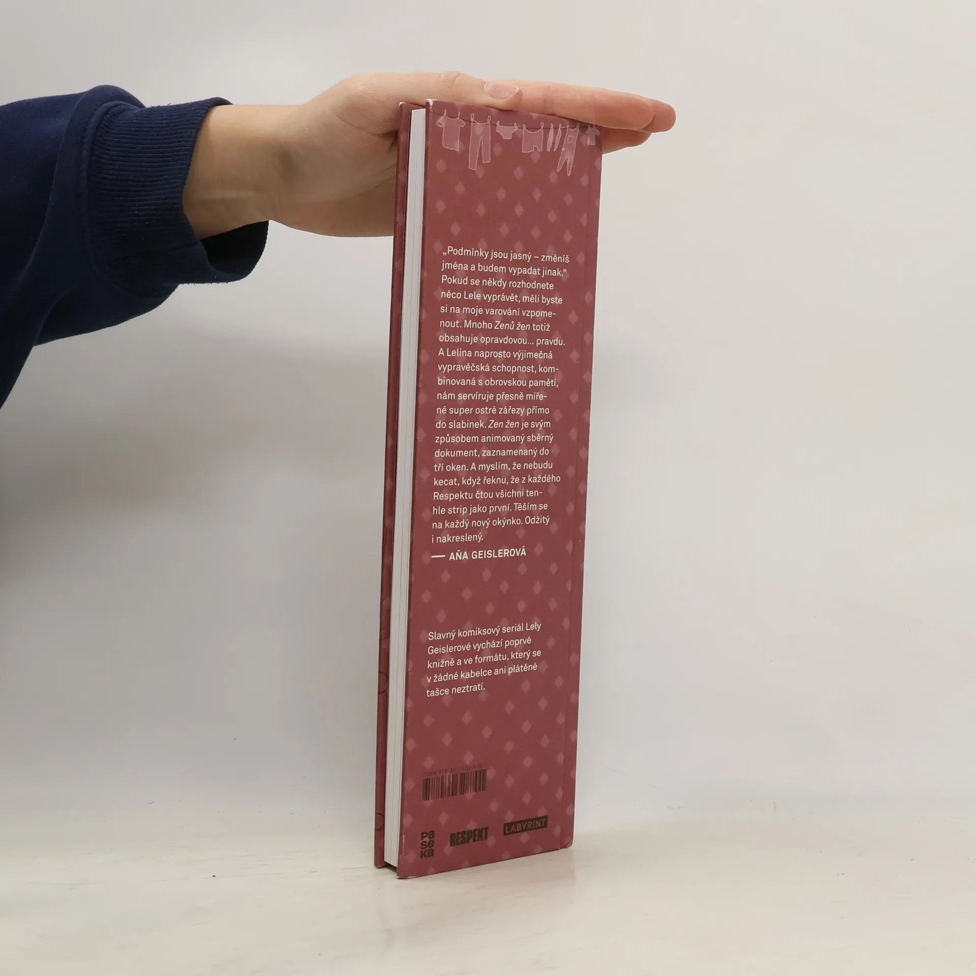 Slavný komiksový seriál Lely Geislerové vychází poprvé knižně a ve formátu, který se v žádné kabelce ani plátěné tašce neztratí. Kniha o ženách, ale nejen pro ženy. Kniha o tom, jaké to je, být dcerou, mámou, kamarádkou, manželkou nebo milenkou. Rozchody, filozofování nad vínem, milostné trapasy, zlobivé děti, nemožní partneři, cynické matky, a ještě trocha vína… Autorčin nadhled, humor a cit pro psychologický detail však důvěrně známé situace povyšují na zábavné etudy z nekonečného seriálu mezilidských vztahů. Přes dvě stovky epizod ze života moderní ženy představuje to nejlepší ze stripu, který několik let baví čtenářky a čtenáře týdeníku Respekt.