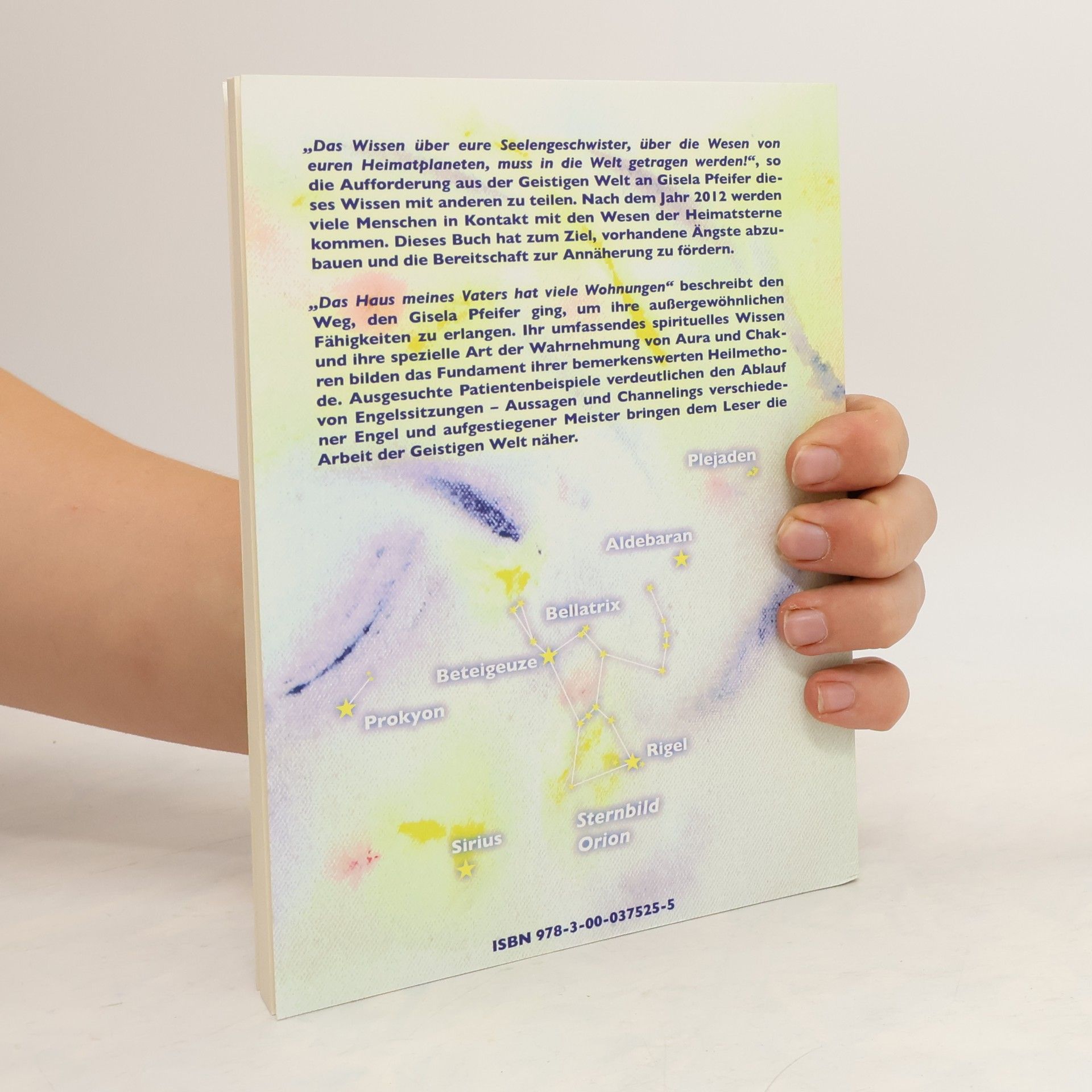„Das Wissen über eure Seelengeschwister, über die Wesen von euren Heimatplaneten, muss in die Welt getragen werden!“, so die Aufforderung aus der Geistigen Welt an Gisela Pfeifer dieses Wissen mit anderen zu teilen. Nach dem Jahr 2012 werden viele Menschen in Kontakt mit den Wesen der Heimatsterne kommen. Dieses Buch hat zum Ziel, vorhandene Ängste abzubauen und die Bereitschaft zur Annäherung zu fördern. „Das Haus meines Vaters hat viele Wohnungen“ beschreibt den Weg, den Gisela Pfeifer ging, um ihre außergewöhnlichen Fähigkeiten zu erlangen. Ihr umfassendes spirituelles Wissen und ihre spezielle Art der Wahrnehmung von Aura und Chakren bilden das Fundament ihrer bemerkenswerten Heilmethode. Ausgesuchte Patientenbeispiele verdeutlichen den Ablauf von Engelssitzungen – Aussagen und Channelings verschiedener Engel und aufgestiegener Meister bringen dem Leser die Arbeit der Geistigen Welt näher.