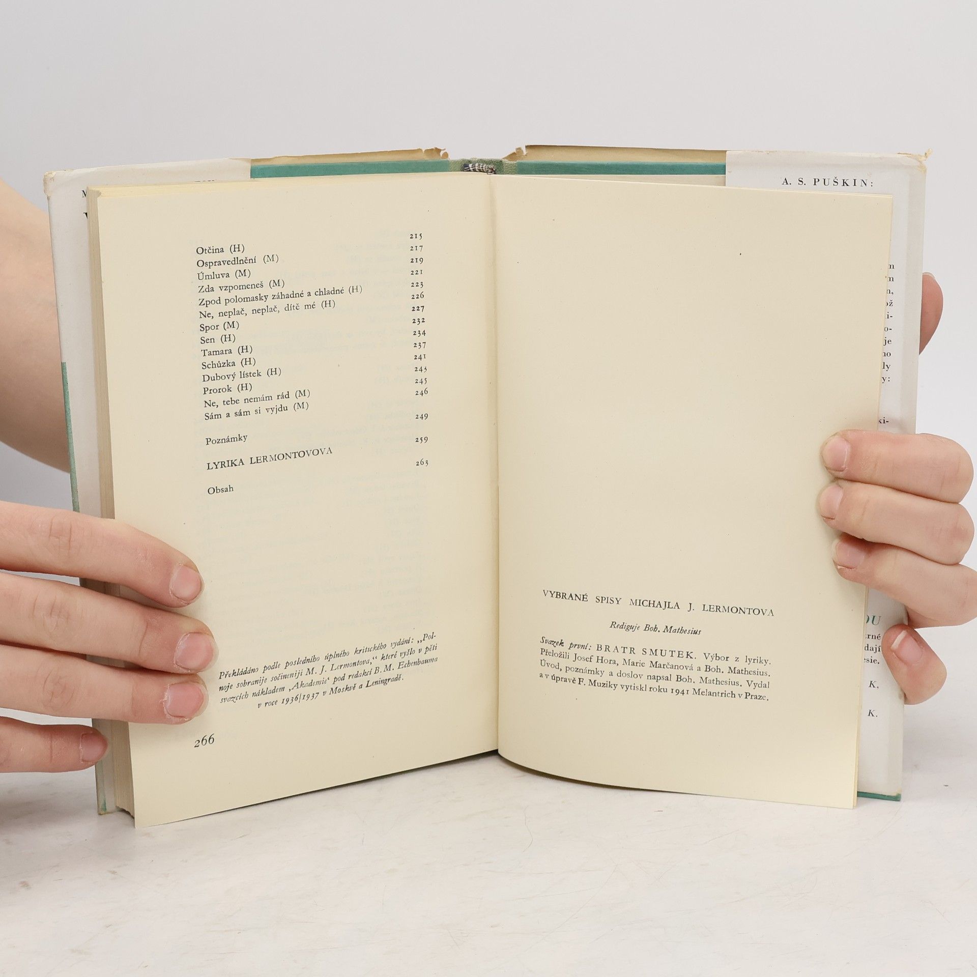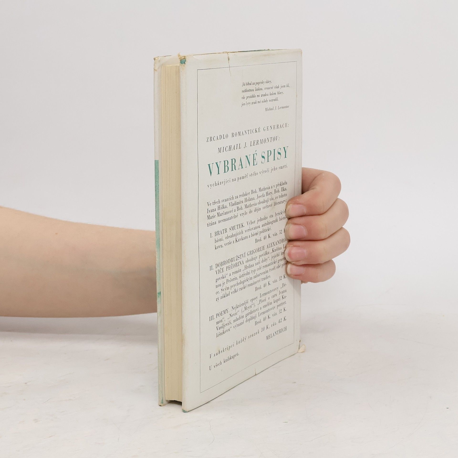 Bratr smutek, Mikhail Lermontov, Josef Hora, Marie Marčanová, Bohumil Mathesius