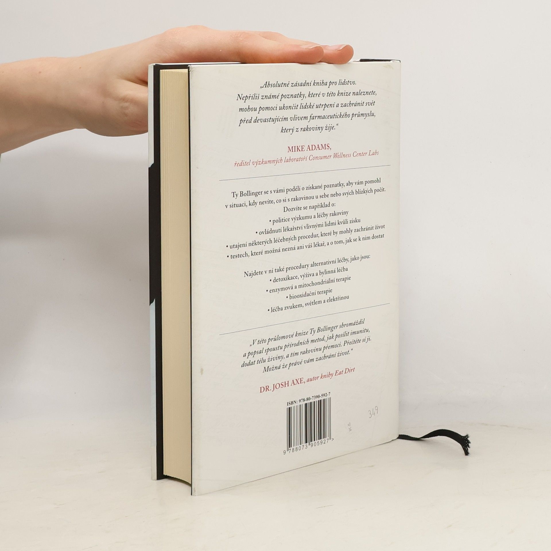 Když přijde na rakovinu, pravděpodobně nebudete vědět, co všechno vám může pomoci. Poté, co sedm členů jeho rodiny během deseti let zemřelo na rakovinu, se Ty Bollinger rozhodl z celého světa posbírat poznatky o této zákeřné nemoci a shromáždil je do této knihy. Je pravděpodobné, že mnohé z nich vás budou šokovat. Ve své knize se věnuje těmto tématům: - Politika výzkumu a léčby rakoviny - Proč jsou některé úspěšné léčebné postupy veřejnosti tajeny - Testy, o kterých váš lékař nemusí vědět a na které máte právo - Alternativní postupy prevence a léčby: •Detox, výživa a přírodní medicína •Metabolické enzymy a mitochondriální terapie •Bio-oxidační terapie •Léčení zvukem, světlem a elektřinou Kniha též obsahuje příběhy lidí, kteří už tyto metody využili. Pokud vy nebo někdo z vašeho okolí právě čelí této zdrcující diagnóze, může vám tato kniha pomoci objevit nové možnosti léčby i prevence. A Pokud jste již prošli konzervativní léčbou, může vám pomoci zlepšit váš zdravotní stav v průběhu chemoterapie nebo ozařování. Kniha může být prospěšná i pracovníkům ve zdravotnictví, kteří se chtějí vzdělávat a rožšířit si své obzory a maximálně pomoci svým pacientům.