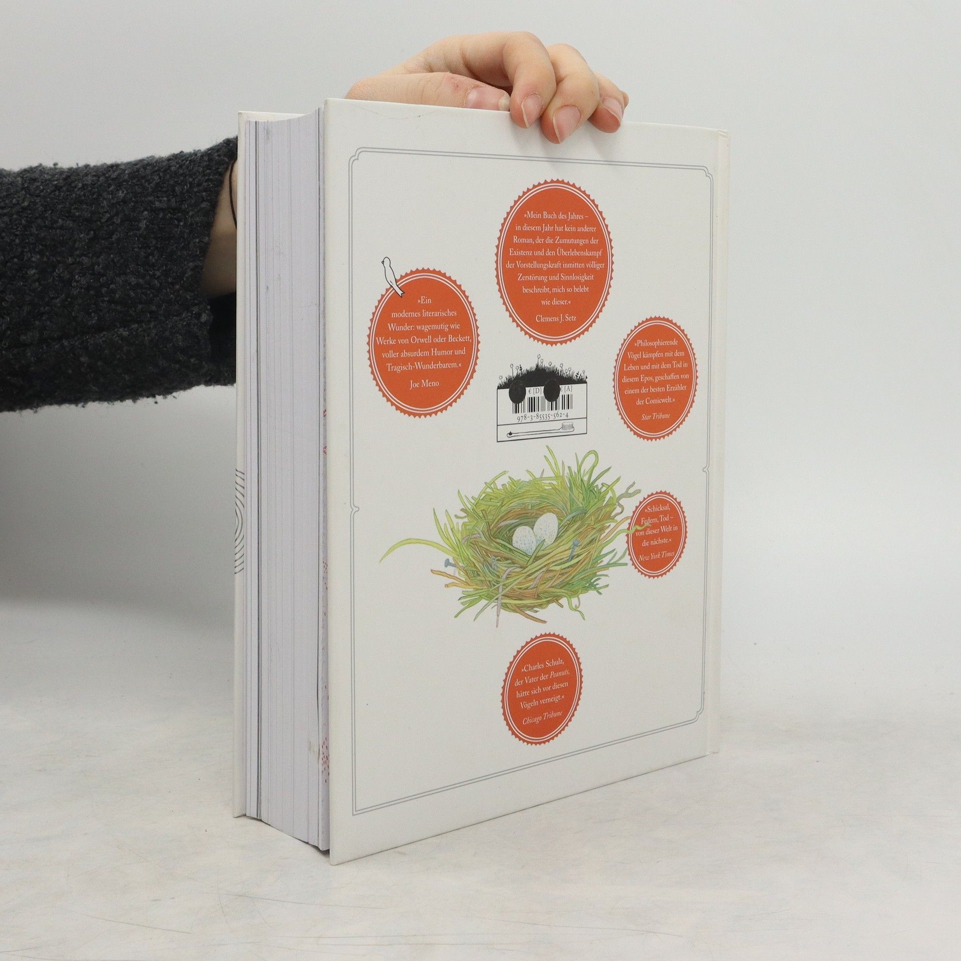 'Große Fragen ist ein modernes literarisches Wunder: wagemutig wie Werke von Orwell oder Beckett, voller absurdem Humor und Tragisch-Wunderbarem.' Joe Meno Die großen Fragen der Menschheit, neu verhandelt von kleinen Philosophen: Warum sind wir hier? Hat unsere Existenz einen Sinn? Und falls ja, haben wir eine Möglichkeit, ihn zu erkennen? Geht es um Liebe? Was aber ist dann stärker – die Liebe oder der Tod? Was ist der Tod? Und was kommt danach? Auf einer Wiese steht eine Hütte, in der ein geistig behinderter Junge bei seiner Großmutter lebt. Ein Flugzeug überfliegt diese Wiese und wirft eine Bombe ab, die nicht explodiert. Wenig später stürzt das Flugzeug in die Hütte. Eine Gruppe Vögel findet den Blindgänger und beobachtet den Absturz. Die Vögel erleben den Einbruch des Unerklärlichen in ihre kleine Welt – und stehen unvermittelt vor genau den großen Fragen, die die Menschheit von jeher beschäftigen. Als der Blindgänger explodiert, der Pilot aus dem Cockpit seines Flugzeugs klettert und der geistig behinderte Junge aus den Trümmern der Hütte in die Welt hinaustritt, gerät eine Lawine von dramatischen Ereignissen ins Rollen, die die Vögel zwingt, Antworten zu finden.