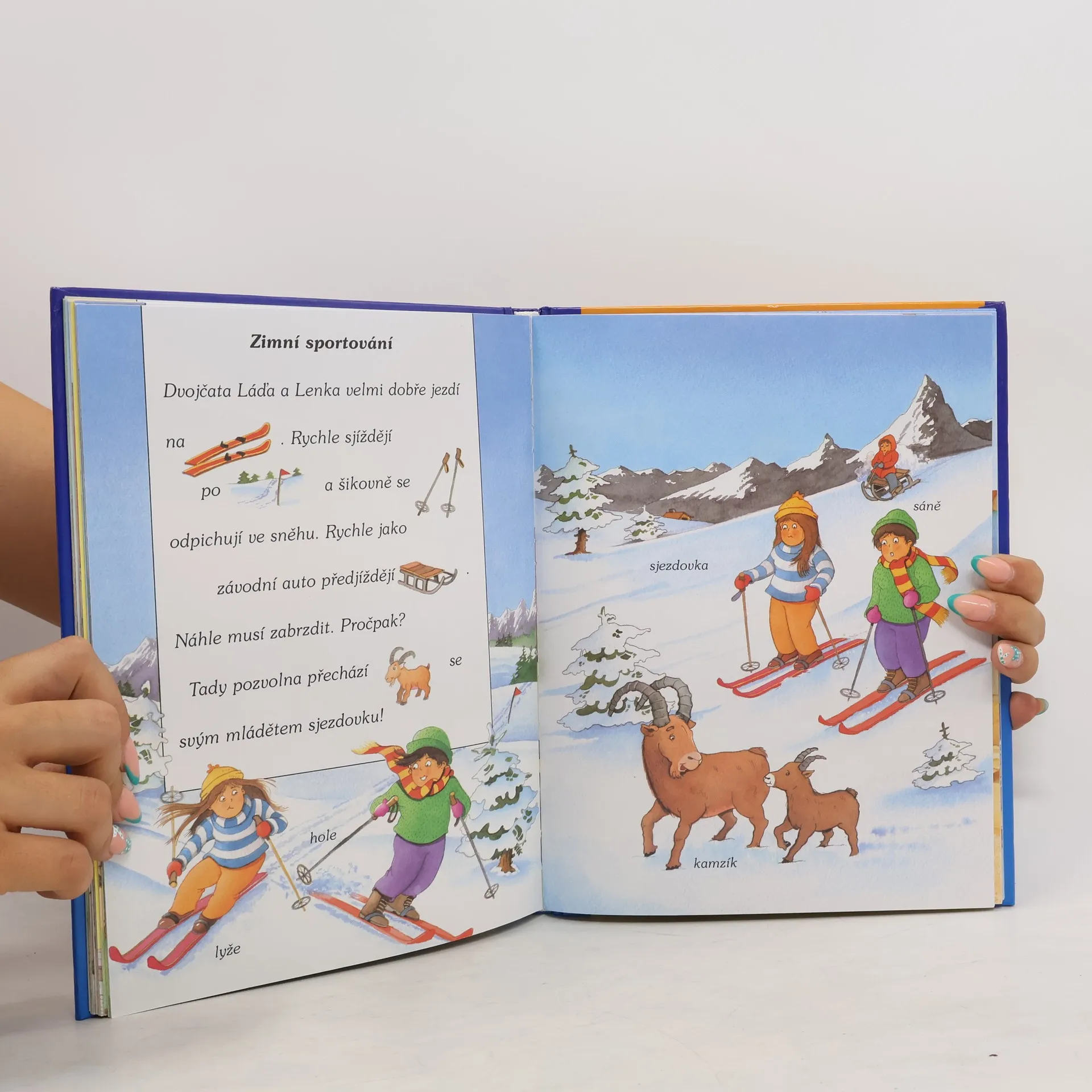 Kniha obsahuje krátké příběhy, v nichž jsou některá slova nahrazena obrázky. Dítě si hravou formou rozšíří slovní zásobu.