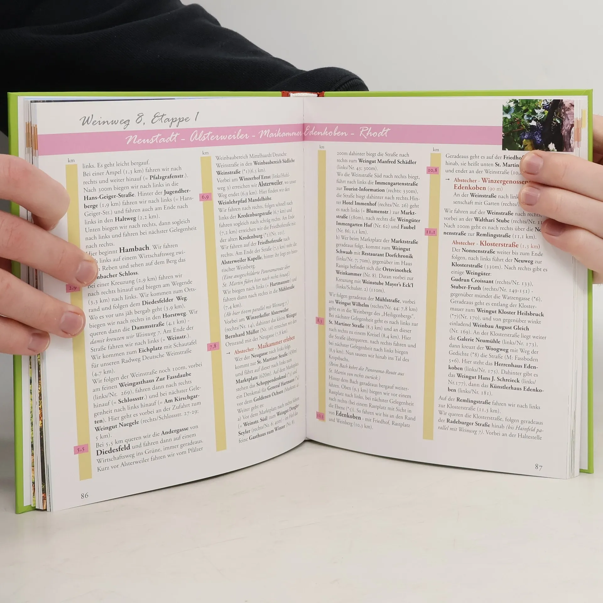 Im Weinland Pfalz blühen im März die Mandelbäume in sattem Rosa, gefolgt von leuchtendem Grün in den Weinbergen im Frühsommer. Im Herbst erstrahlen die Weinberge goldgelb und der Duft von gärendem Traubenmost erfüllt die Orte, was das Weinland manchmal so belebt wie eine Stadt. Ein Besuch lohnt sich jedoch das ganze Jahr über, um die zahlreichen Weingüter zu erkunden, was mehr als nur einen Ausflug erfordert. Dieses renommierte Weinland teilt sich in zwei Bereiche: Mittelhaardt/Deutsche Weinstraße und Südliche Weinstraße. Oft wird beides in einem Buch behandelt, was der Vielfalt nicht gerecht wird. Daher konzentriert sich „Weinwege genießen in der Südpfalz“ ausschließlich auf die Südliche Weinstraße. Es bietet mehr als andere Wein- und Wanderbücher: Es regt dazu an, die Landschaft beim Wandern, Radfahren oder mit dem Bus zu erkunden. Geschichten zu den Orten und dem Wein, begleitet von prächtigen Fotos, machen die Südpfalz lebendig. Abstecher zu sorgfältig ausgewählten Weingütern ergänzen die Erkundung. Um die gesamte Weinbauregion Südliche Weinstraße lebendig darzustellen, sind mindestens zwei Bände erforderlich. Band 1 zeigt die Weinlandschaft zwischen Maikammer/Kirrweiler und Landau/Siebeldingen sowie die weinfrohe Stadt Speyer.