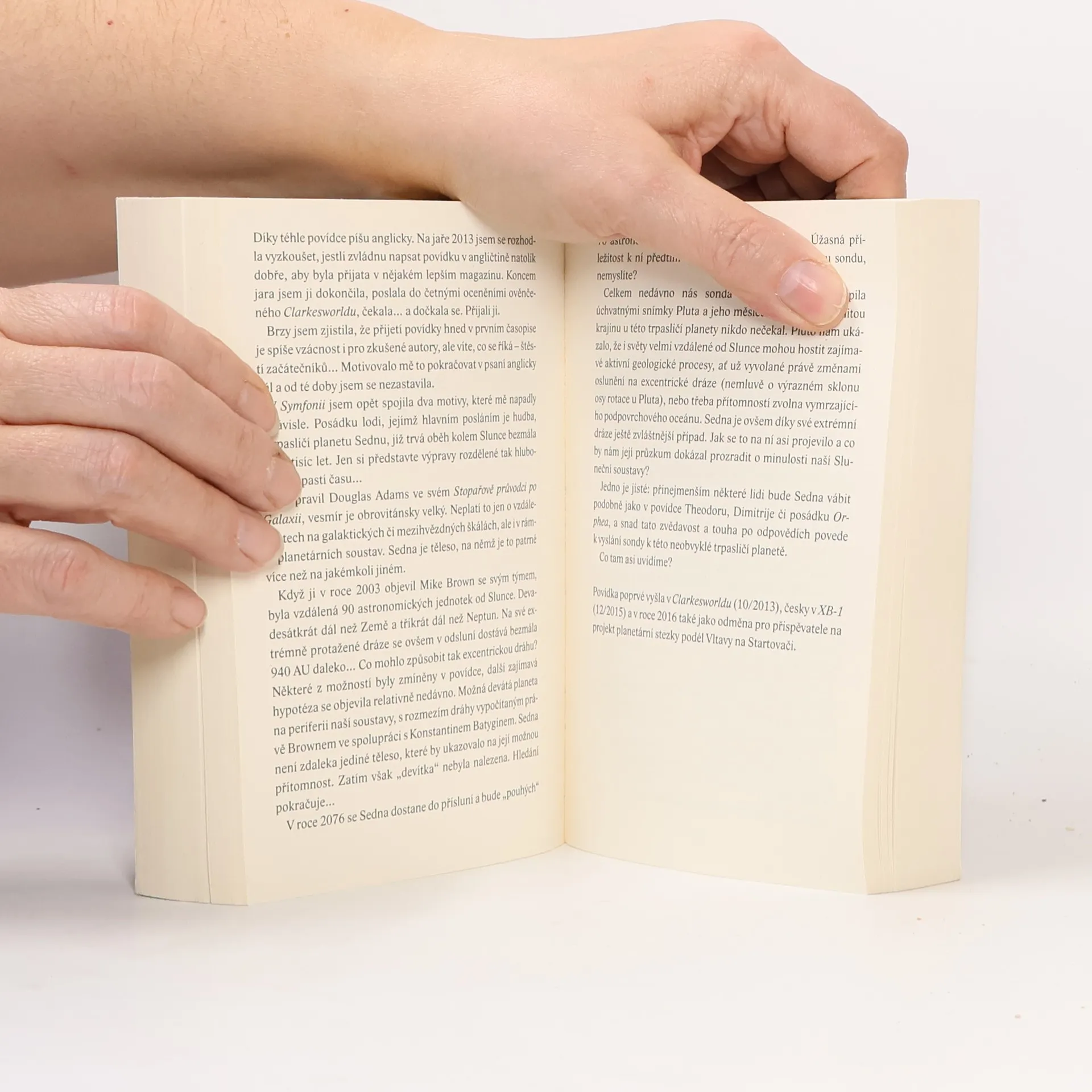 Za obzorem se skrývají nové a tajemné světy, kam lidská noha ještě nevkročila: Věčně zmrzlé trpasličí planety ukrývající dávné vraky. Bludiště zvířecích myslí a emocí. Virtuální reality. Vjemy překypující krajina lidského čichu ve světě pokročilých technologií. Kolonie na nebezpečných dalekých planetách. Světy, kam se dostaneme, když se zeptáme "co kdyby"... Na cestu od budoucí Země přes Sluneční soustavu až do dalekých koutů galaxie vás vezme spisovatelka Julie Nováková v povídkách, z nichž řada zde vychází česky nebo světově poprvé. Každý příběh doplňuje i zábavný komentář autorky odhalující, jak povídka vznikla - a protože jsme v říši science fiction, občas i s vědeckými referencemi!
