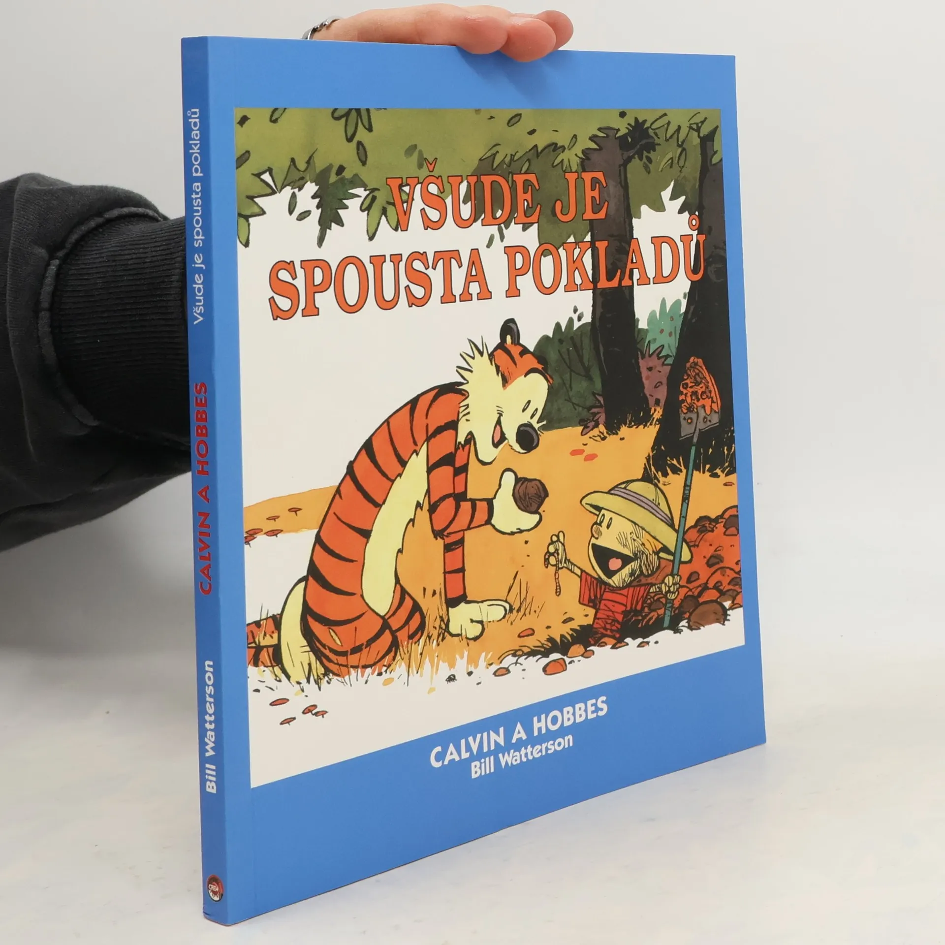 Pokud jste malý kluk s poněkud svébytným názorem na morálku, domácí úkoly, úklid a školní docházku, nemůžete mít lepšího parťáka než tygra. A co na tom, že se ostatním jeví jako plyšový. Hlavně když s vámi prožívá všemožná dobrodružství. Ať už cestujete vesmírem, časem, nebo jen bojujete proti té největší hrozbě současného světa – holkám. Již desátý díl z kultovní stripové řady. Všude je spousta pokladů – a nejvíc jich je v téhle knize!