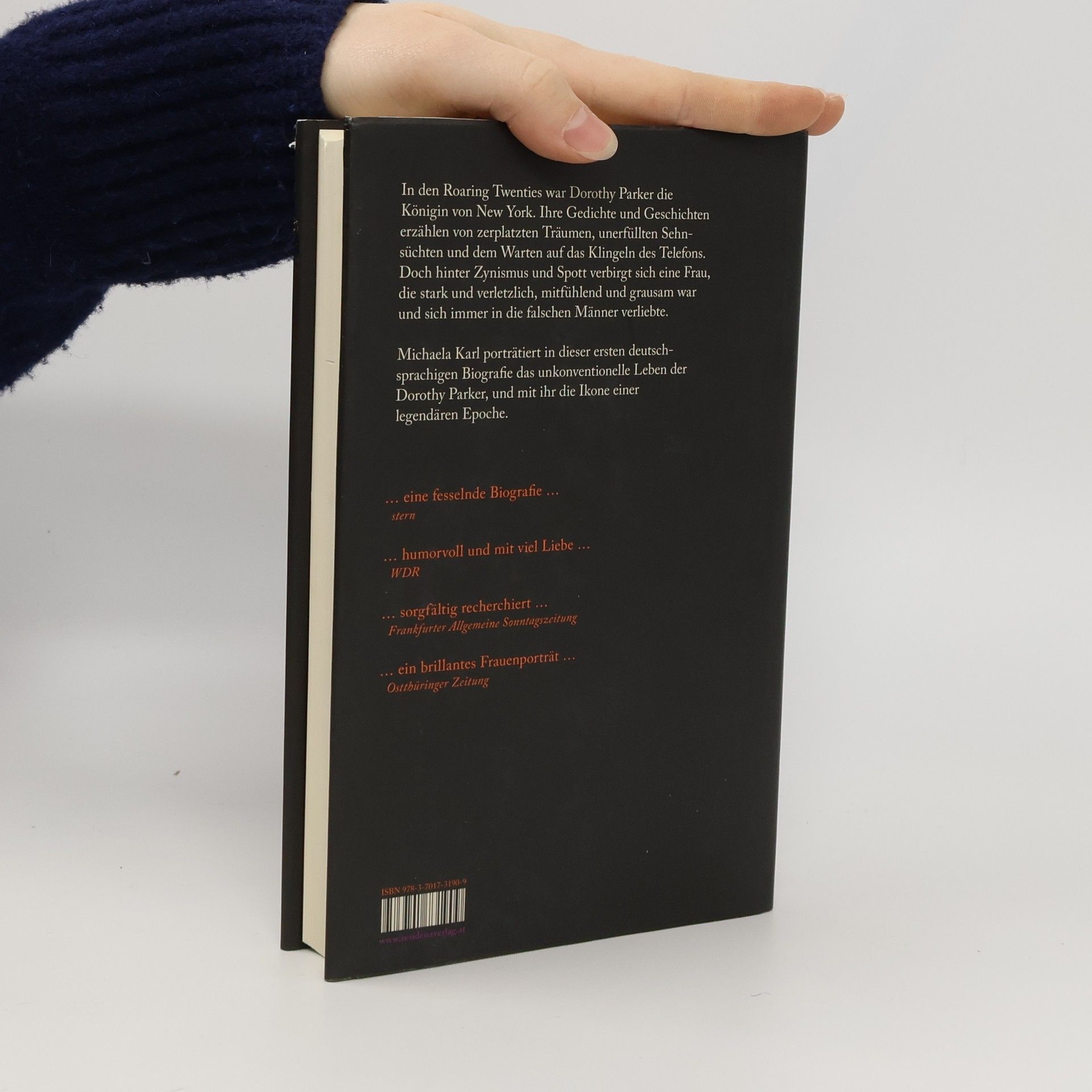 I love a Martini – but two at the most. Three, I’m under the table; Four, I’m under the host. (Dorothy Parker) In den Roaring Twenties war sie die Königin von New York. Ihre scharfe Zunge und ihr beißender Witz wurden Legende. Sie stritt mit Ernest Hemingway, schlief mit F. Scott Fitzgerald und soff mit Truman Capote. Dorothy Parker schrieb für "Vogue“, „Vanity Fair“ und den „New Yorker“ und gehörte zur legendären Tafelrunde des Hotels Algonquin, wo sich die kulturelle Szene der Stadt traf. Ihre sarkastischen Verse und pointierten Kurzgeschichten erzählen von zerplatzten Träumen und dem Warten auf das Klingeln des Telefons. Sie machte als Drehbuchautorin in Hollywood Karriere und landete wegen ihres Engagements gegen Rassismus und Faschismus auf der Schwarzen Liste von Senator McCarthy. Michaela Karl legt nun die erste deutschsprachige Biografie vor. Sie porträtiert das unkonventionelle Leben der Dorothy Parker, und entdeckt hinter der zynischen Fassade eine sensible Frau auf der Suche nach dem großen Glück.