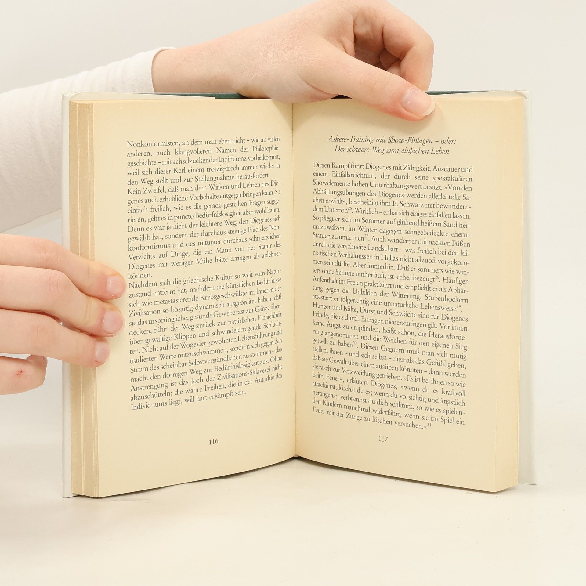 Muss Philosophie immer eine bierernste Angelegenheit sein? Einer, der das vehement bestritten hat, war der griechische Denker Diogenes (um 400 – 324/323 v. Chr.), jener berühmte Tonnen-Philosoph, der bis heute als eine der schillerndsten und originellsten Gestalten des Altertums gilt. Nicht zuletzt verdankt sich das seinem Mut, Philosophie ganz anders zu präsentieren und dafür im wahrsten Sinne des Wortes auf die Straße zu gehen. Seine Gesellschaftskritik lebte er mit einer nachgerade schockierenden Konsequenz vor. Seine Forderung: nicht mehr und nicht weniger als der konsequente Ausstieg aus der Zivilisation. Sein Credo: zurück zur Natur – dort allein vermag der Mensch wahres Glück und wahre Freiheit zu finden. Karl-Wilhelm Weeber stellt in diesem locker geschriebenen und unterhaltsam zu lesenden Band Diogenes und seine Ideenwelt vor.