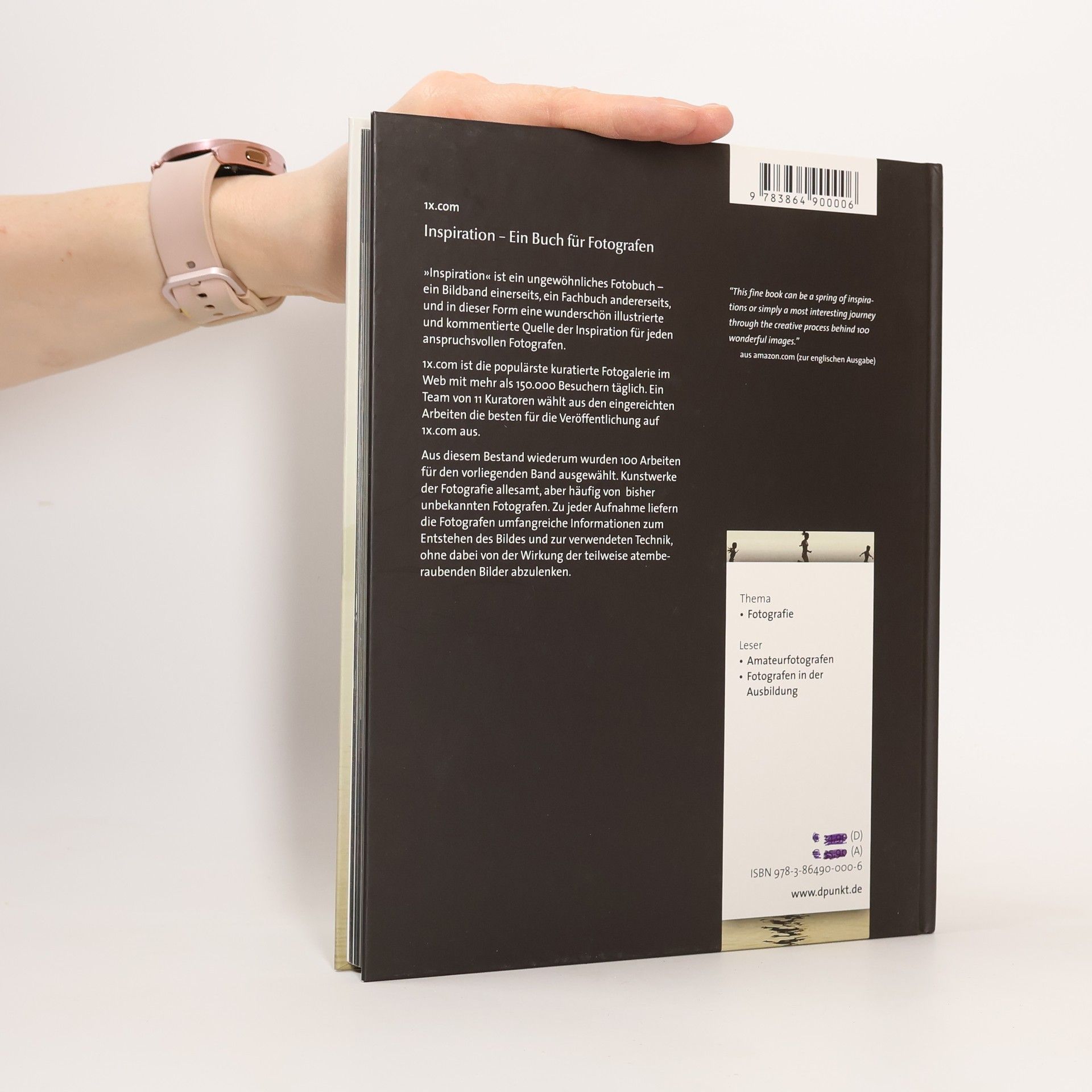 'Inspiration - Ein Buch für Fotografen' ist ein ungewöhnliches Fotobuch ein Bildband einerseits, ein Fachbuch andererseits, und in dieser Form eine wunderschön illustrierte und kommentierte Quelle der Inspiration für jeden anspruchsvollen Fotografen. 1x.com ist die populärste kuratierte Fotogalerie im Web mit mehr als 150.000 Besuchern täglich. Ein Team von 11 Kuratoren wählt aus den eingereichten Arbeiten die besten für die Veröffentlichung im Internet aus. Aus diesem Bestand wiederum wurden 100 Arbeiten für die Publikation im vorliegenden Band ausgewählt. Kunstwerke der Fotografie allesamt, aber häufig von bisher unbekannten Fotografen. Zu jeder Aufnahme liefern die Herausgeber des Bandes umfangreiche Information zum Fotografen, zum Entstehen des Bildes und zur verwendeten Technik, ohne dabei von der Wirkung der teilweise atemberaubenden Bilder abzulenken.
