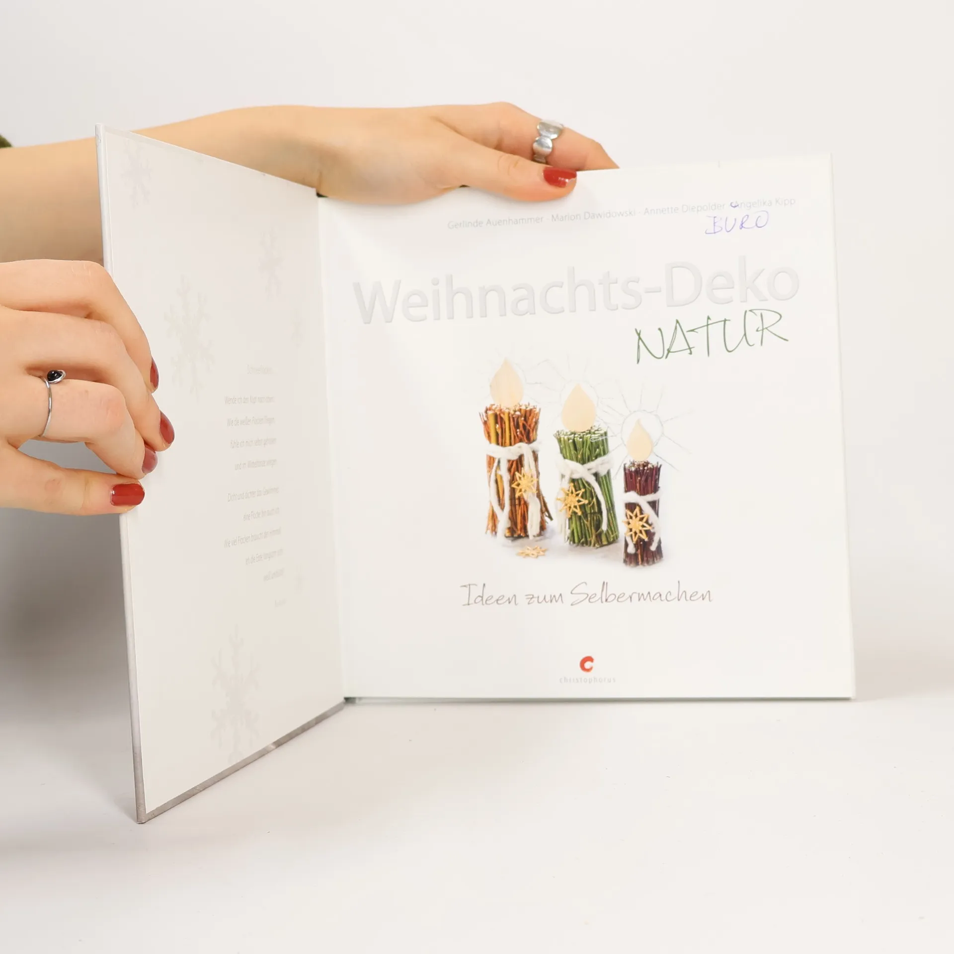 Weihnachtszauber Zur Advents- und Weihnachtszeit gibt es viele schöne Deko-Ideen mit natürlichen Materialien, stilvoll kombiniert mit Metall, Filz und zarten Papieren. Aus Holzscheiten, Zapfen von Tanne, Kiefer oder Pinie, Astabschnitten, Baumrinde und vielem mehr, das draußen im Wald oder Garten zu finden ist, entstehen Kerzenleuchter, Adventskränze, Schmuck für die Tür sowie Engel und Sterne für Fenster und Tisch. Alles Ton in Ton, mit zarten Farbakzenten und vor allem einfach gemacht. Denn das, was die Natur uns gibt, ist ja schon wunderschön. Zusammen mit dem Duft von Kerzen und Gebäck zaubern wir uns eine festliche Atmosphäre voll Behaglichkeit. Die tägliche Hektik bleibt vor der Tür und die Gedanken können zur Ruhe kommen.