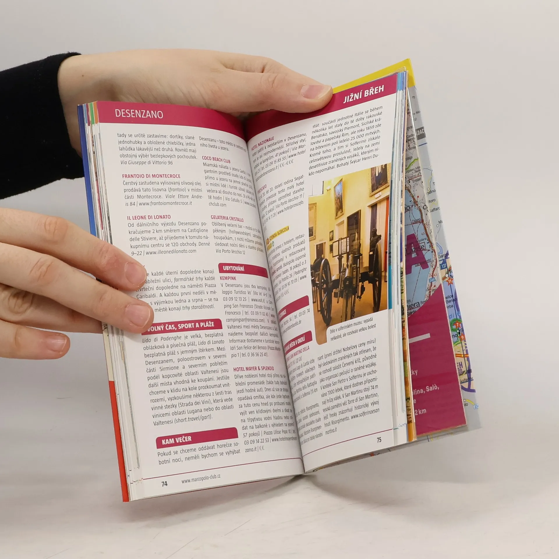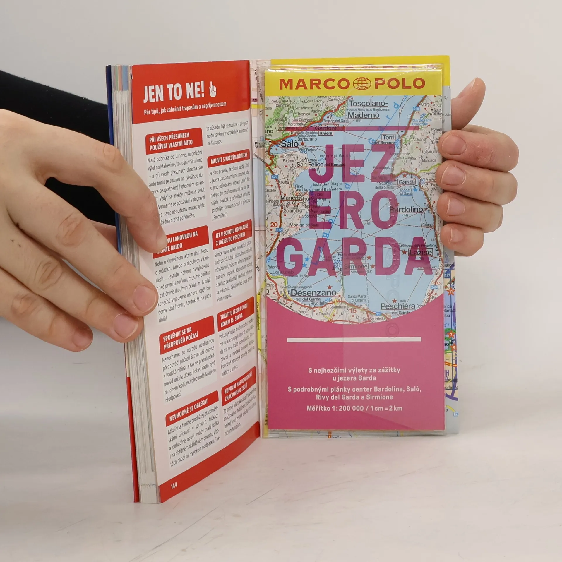 Turistický průvodce Marco Polo v nové edici s cestovním atlasem a přiloženou mapou. 6 NAŠE NEJLEPŠÍ TIPY 8 TO NEJLEPŠÍ Z... 12 ÚVOD 18 TRENDY 20 FAKTA, LIDÉ, NOVINKY 26 JÍDLO A PITÍ 30 NÁKUPY 32 SEVERNÍ BŘEH 32 Limone sul Garda 36 Malcesine 41 Riva del Garda 45 Torbole 50 VÝCHODNÍ BŘEH 51 Bardolino 56 Garda 61 Lazise 67 Torri del Benaco 70 JIŽNÍ BŘEH 70 Desenzano 76 Sirmione 80 ZÁPADNÍ BŘEH 81 Gardone Riviera 87 Gargnano 91 Salò 96 VÝLETY ZA ZÁŽITKY 96 Seznamme se s jezerem Garda 100 Horská túra masívem Monte Baldo 103 Údolím řeky Sarcy do Trenta a Rovereta 107 Výlet autem do kopců okolo Tremosine a Tignale 110 Cyklovýlet po obou březích řeky Mincio 112 SPORT A WELLNESS 116 CESTUJEME S DĚTMI 120 SLAVNOSTI A UDÁLOSTI 122 ODKAZY, BLOGY, APLIKACE A JINÉ 124 PRAKTICKÉ POKYNY 130 CESTOVNÍ ATLAS 142 REJSTŘÍK A TIRÁŽ 144 JEN TO NE!