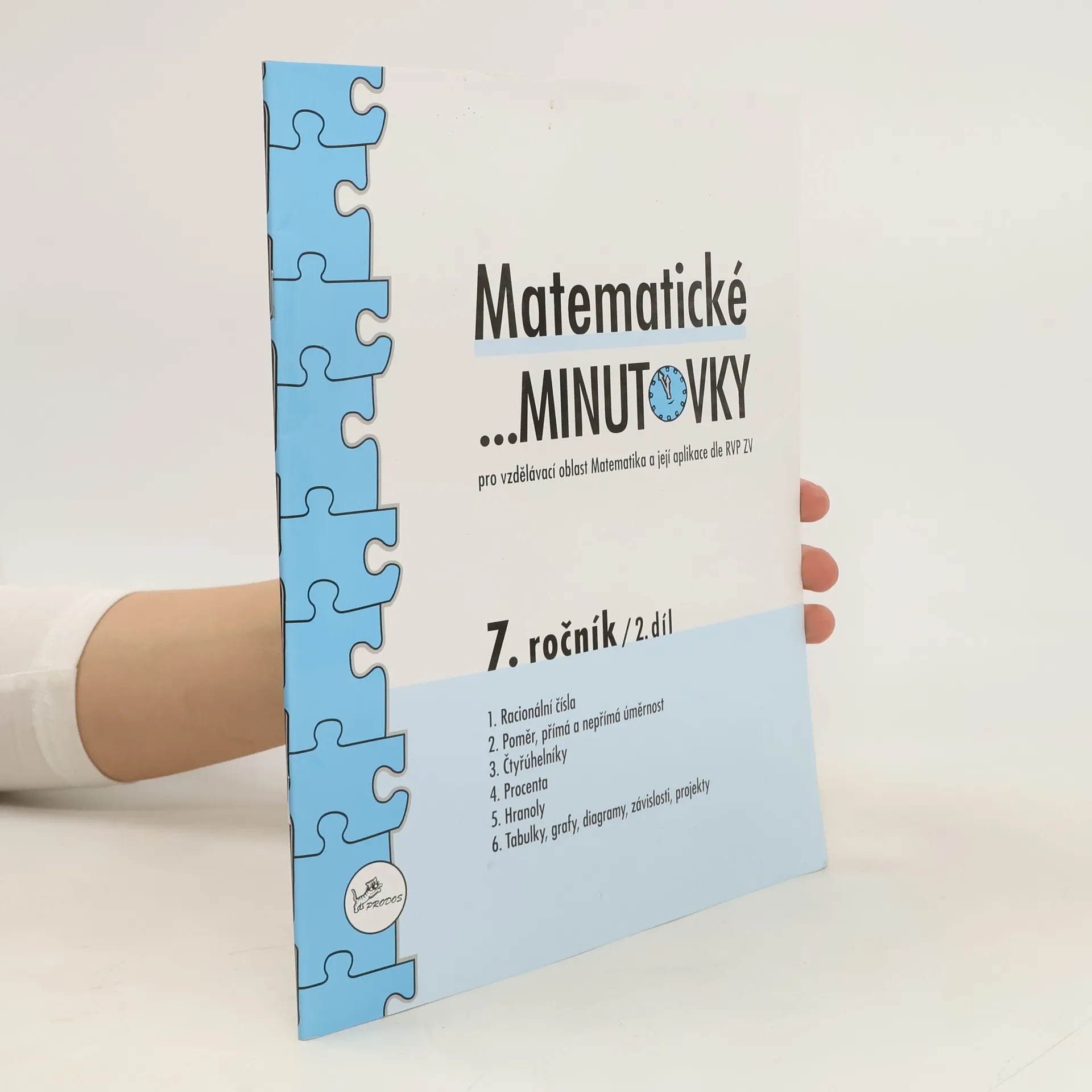 Pracovní sešity Matematických …minutovek 7 navazují na úspěšnou řadu nakladatelství Prodos pro 1. stupeň základních škol. I tentokrát se žákům dostává možnost procvičit si vědomosti a dovednosti získané v hodinách matematiky. S postupem k učební látce vyšších ročníků souvisí i proměna formátu …minutovek. Především úlohy z geometrie si vyžadují větší prostor pro řešení, proto budou od šestého ročníku vycházet …minutovky v osvědčeném formátu 200 x 260 mm. Novinkou je také možnost pracovat s vyjímatelnými listy, protože jednotlivé stránky pracovních sešitů jsou perforovány, aby bylo možné je v případě zájmu uvolnit z vazby. Obsah Racionální čísla Poměr, přímá a nepřímá úměrnost Čtyřúhelníky Procenta Hranoly Tabulky, grafy, diagramy, závislosti, projekty