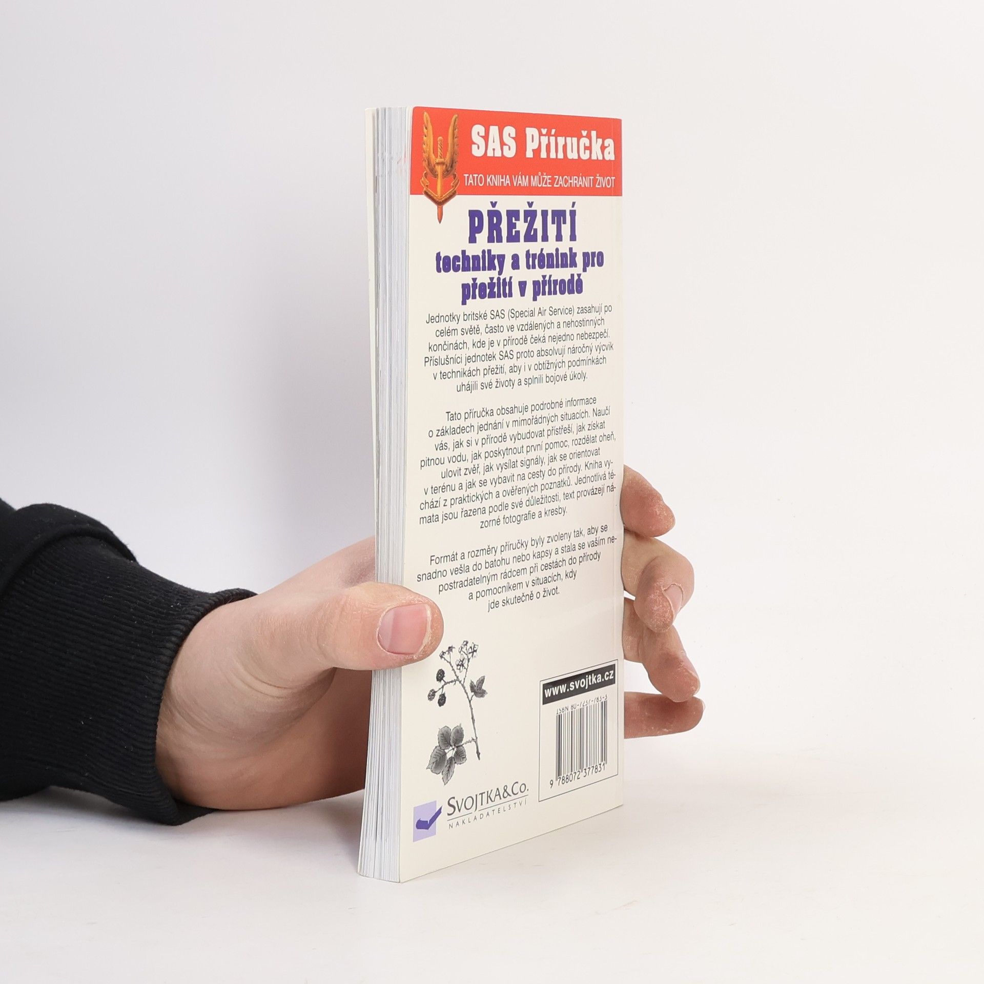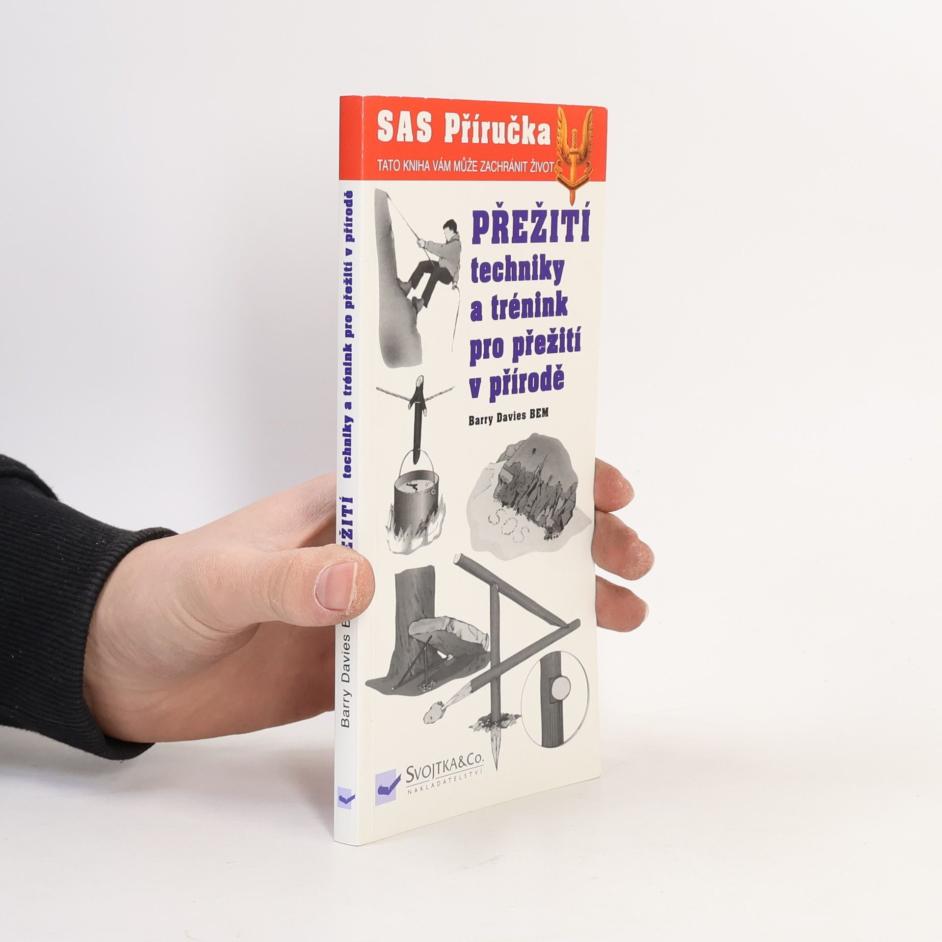 Tato kniha vám může zachránit život! Najdete v ní podrobné informace o nutných postupech v mimořádných situacích. Naučí vás, jak si v přírodě vybudovat přístřeší, jak získat pitnou vodu, jak poskytnout první pomoc, rozdělat oheň, ulovit zvěř, jak vysílat signály, jak se orientovat v terénu a jak se vybavit na cesty do přírody. Vychází z praktických a ověřených poznatků a jednotlivá témata jsou řazena podle své důležitosti, text provázejí názorné fotografie a kresby. Formát a rozměry knihy byly zvoleny tak, aby se snadno vešla do batohu nebo do kapsy a stala se vaším nepostradatelným rádcem při cestách do přírody a pomocníkem v situacích, kdy jde skutečně o život.