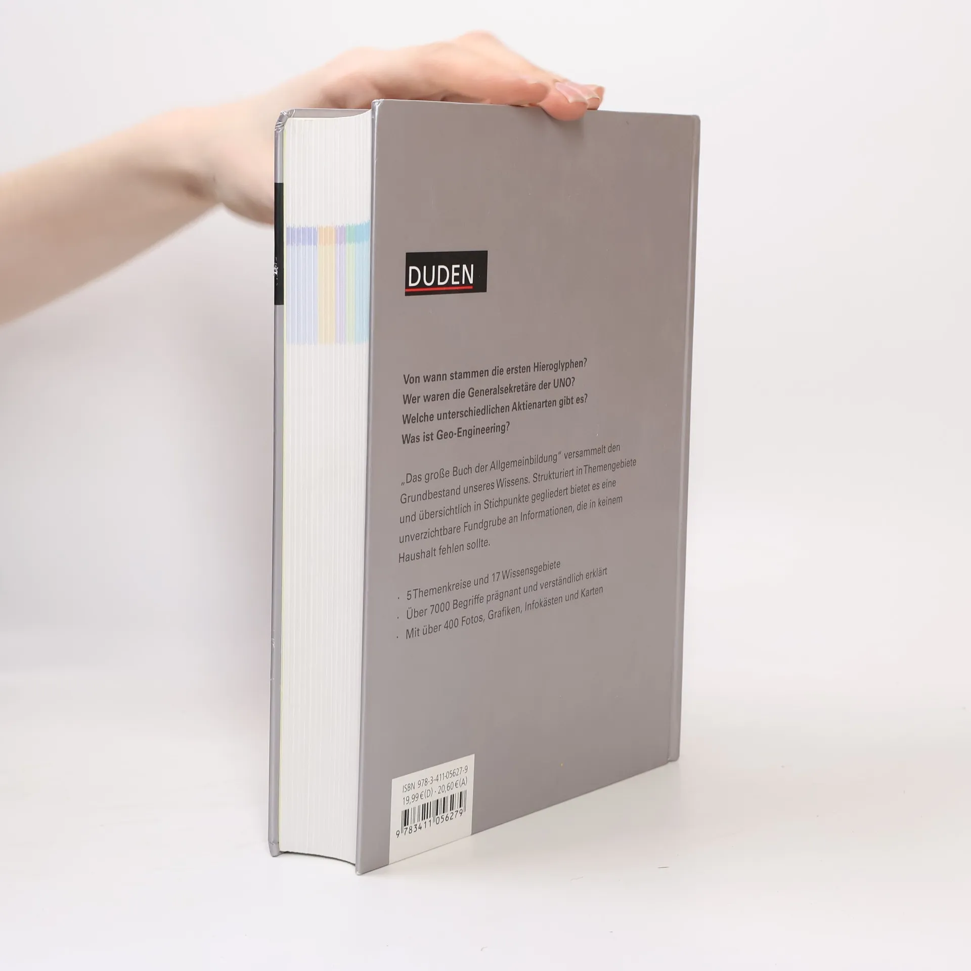 Der moderne Mensch ertrinkt in Informationen. Alle paar Jahre verdoppelt sich das Wissen. Die Verunsicherung wächst: Was muss ich wissen, was sollte ich wissen, was ist nicht so wichtig? Ein Leitfaden durch das Labyrinth des Wissensangebots unserer Zeit zu sein, ist das Ziel des vorliegenden Buchs. Es versammelt die Daten, Fakten und Zusammenhänge, die den Grundbestand unserer Allgemeinbildung darstellen, in fünf großen Wissensgebieten: Geschichte und Gesellschaft Kultur und Sprache Glauben und Denken Mensch und Leben Erde, Naturwissenschaft und Technik Neben über 7000 Stichwörtern tragen rund 400 Fotos, Grafiken, Karten, Tabellen und Infokästen sowie ein ausführliches Register zu einer verständlichen und anschaulichen Darstellung bei.