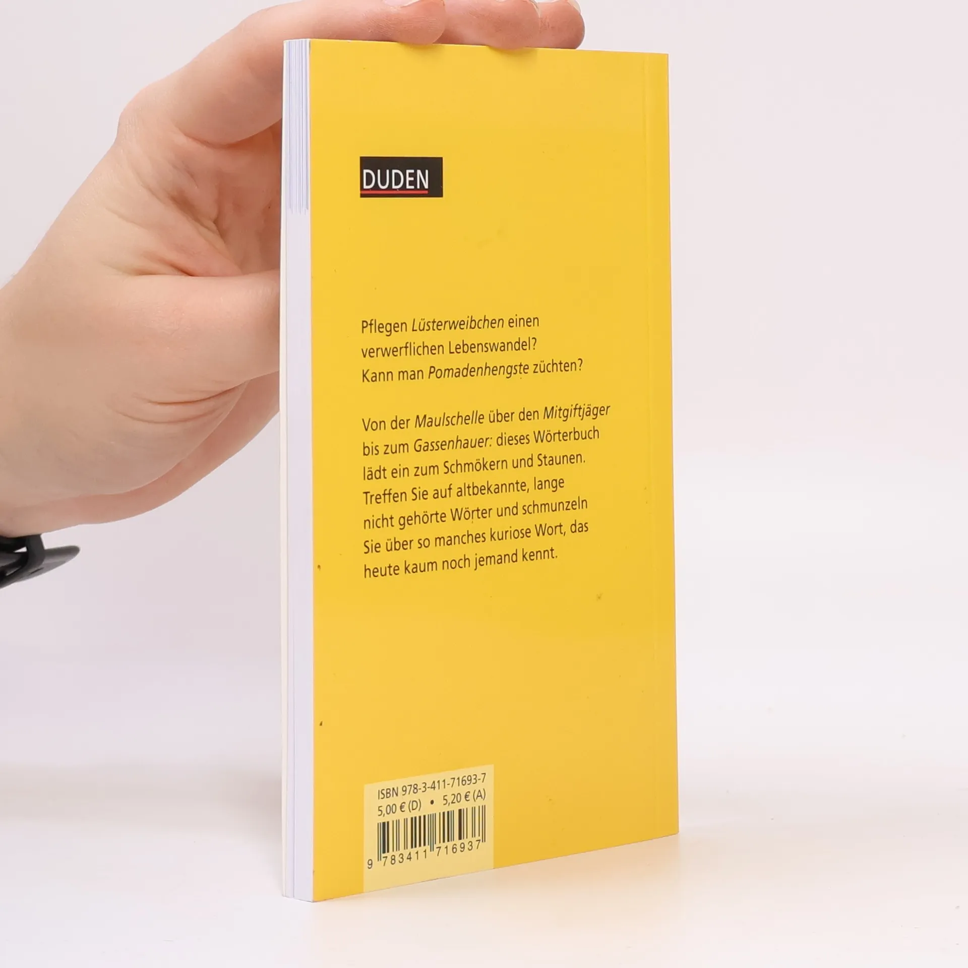 Pflegen Lüsterweibchen einen verwerflichen Lebenswandel? Kann man Pomadenhengste züchten? Von der Maulschelle über den Mitgiftjäger bis zum Gassenhauer: Dieses Wörterbuch lädt ein zum Schmökern und Staunen. Treffen Sie auf altbekannte, lange nicht gehörte Wörter und schmunzeln Sie über so manches kuriose Wort, das heute keiner mehr kennt.