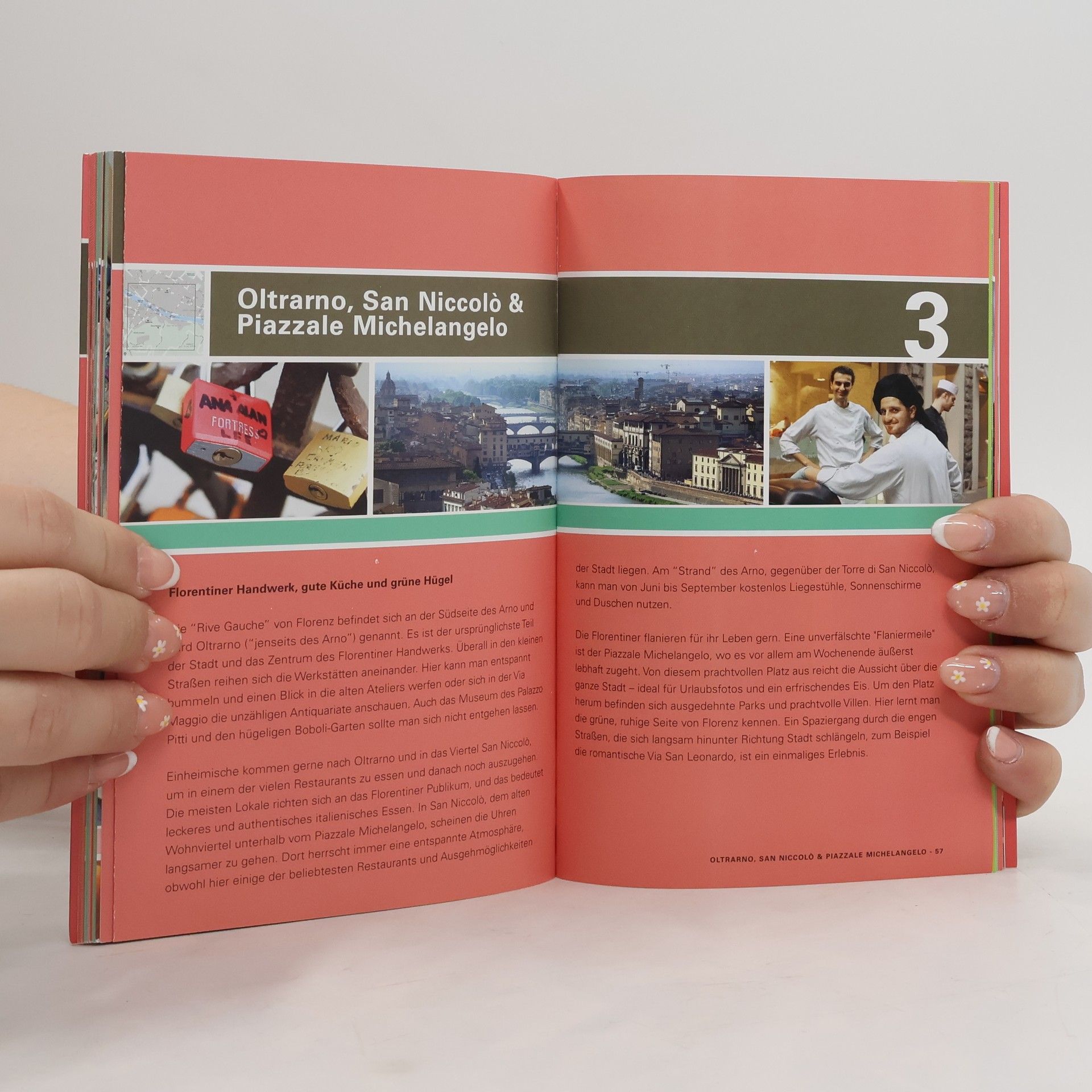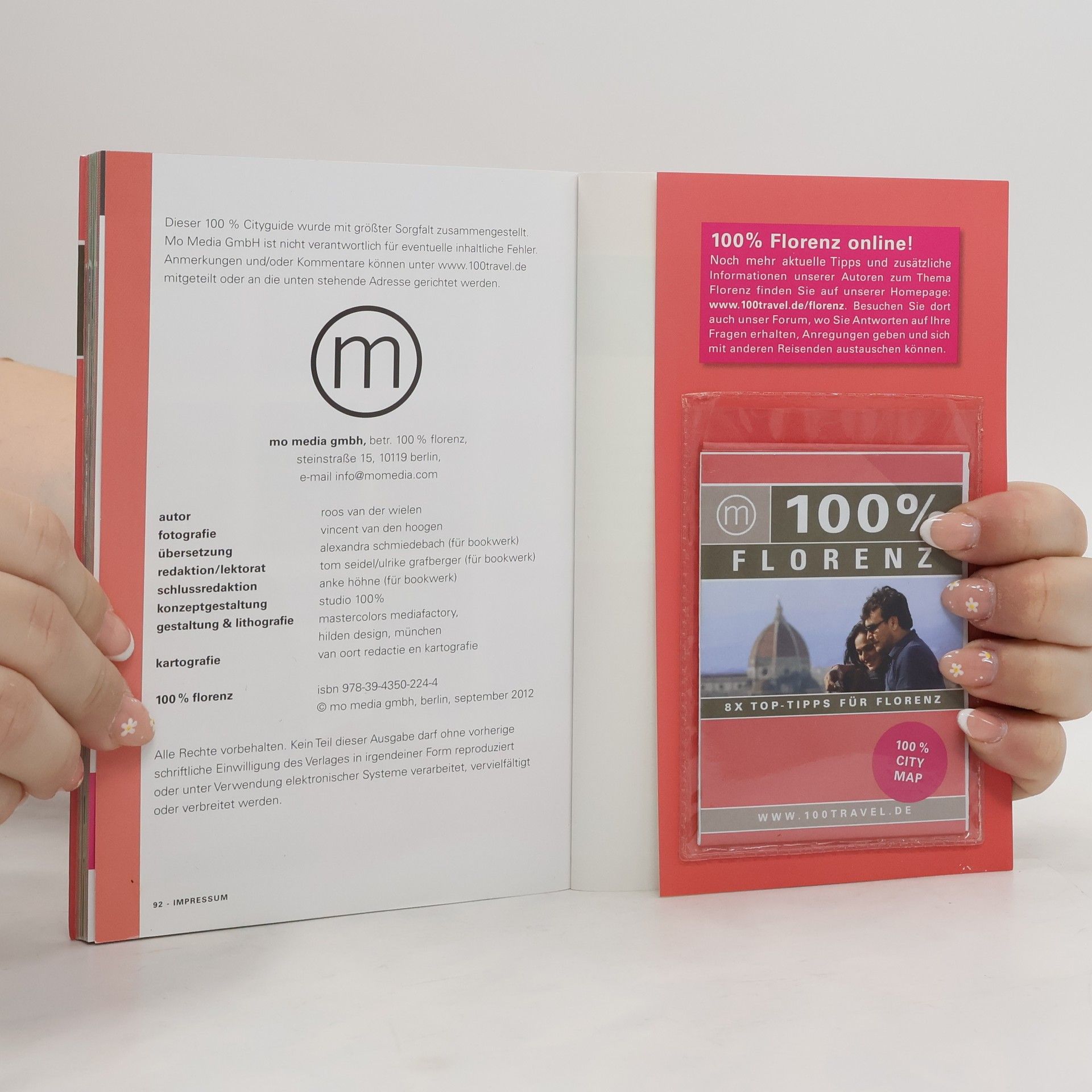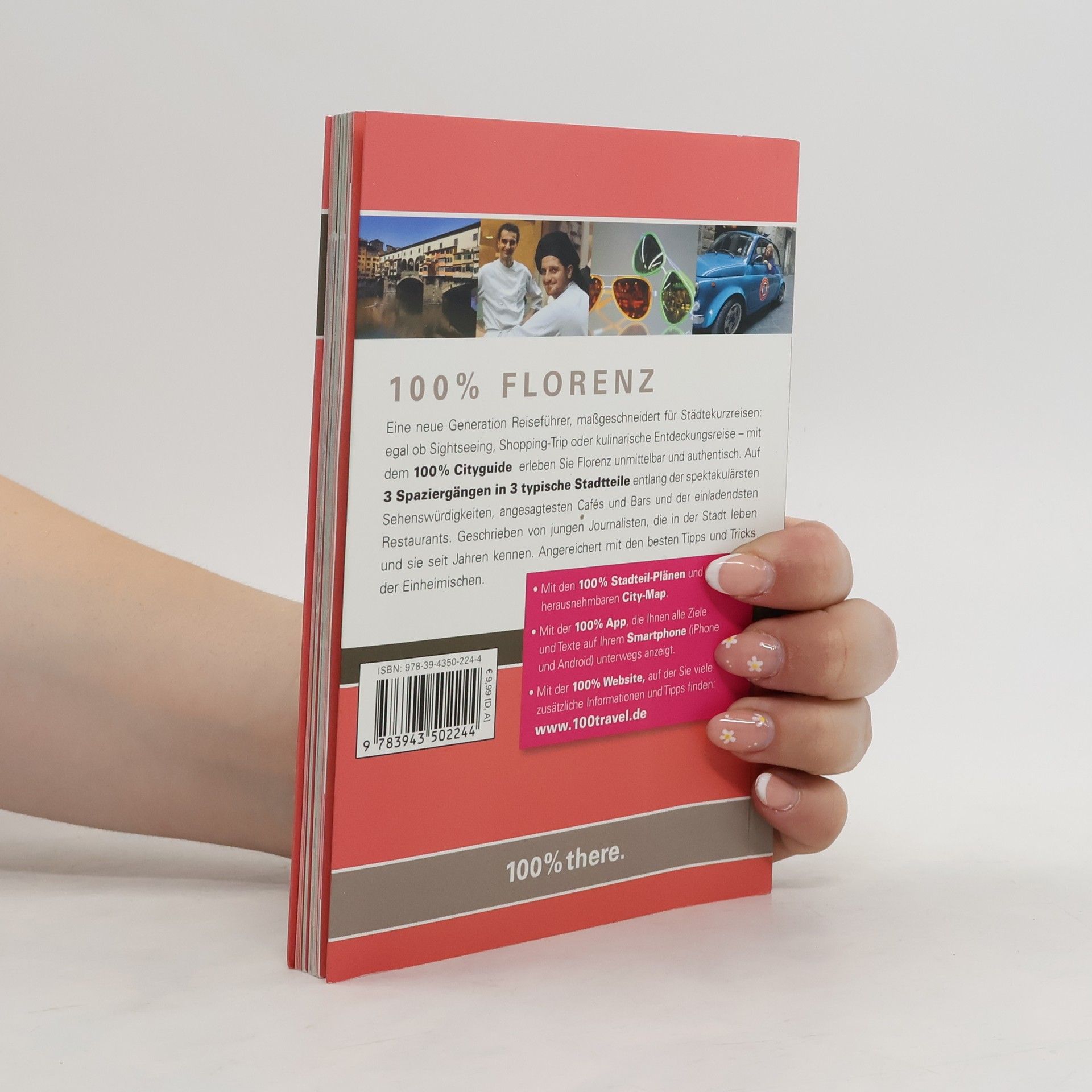 Mit dem 100% Cityguide Florenz entdecken Sie schnell und unkompliziert die schönsten und spannendsten Viertel der Stadt. Drei Spaziergänge führen Sie entlang der wichtigsten Highlights, besten Adressen und Lieblingstipps der Autoren zu den Themen Sehenswürdigkeiten, Essen & Trinken, Shopping und 100% there. Übersichtlich gestaltet, mit detaillierten Stadtteilkarten und herausnehmbarem Stadtplan – damit Sie einfach losgehen und entspannt Florenz erleben können. Mit der 100% Travel App können Sie sich alle Adressen des 100% Cityguides einfach und kostenlos auf Ihr Smartphone (iPhone oder Android) herunterladen. Ein GPS-basierter Stadtplan zeigt die Adressen in Ihrer Nähe an. Die App ist komplett offline nutzbar, es entstehen keine Roaming-Gebühren.