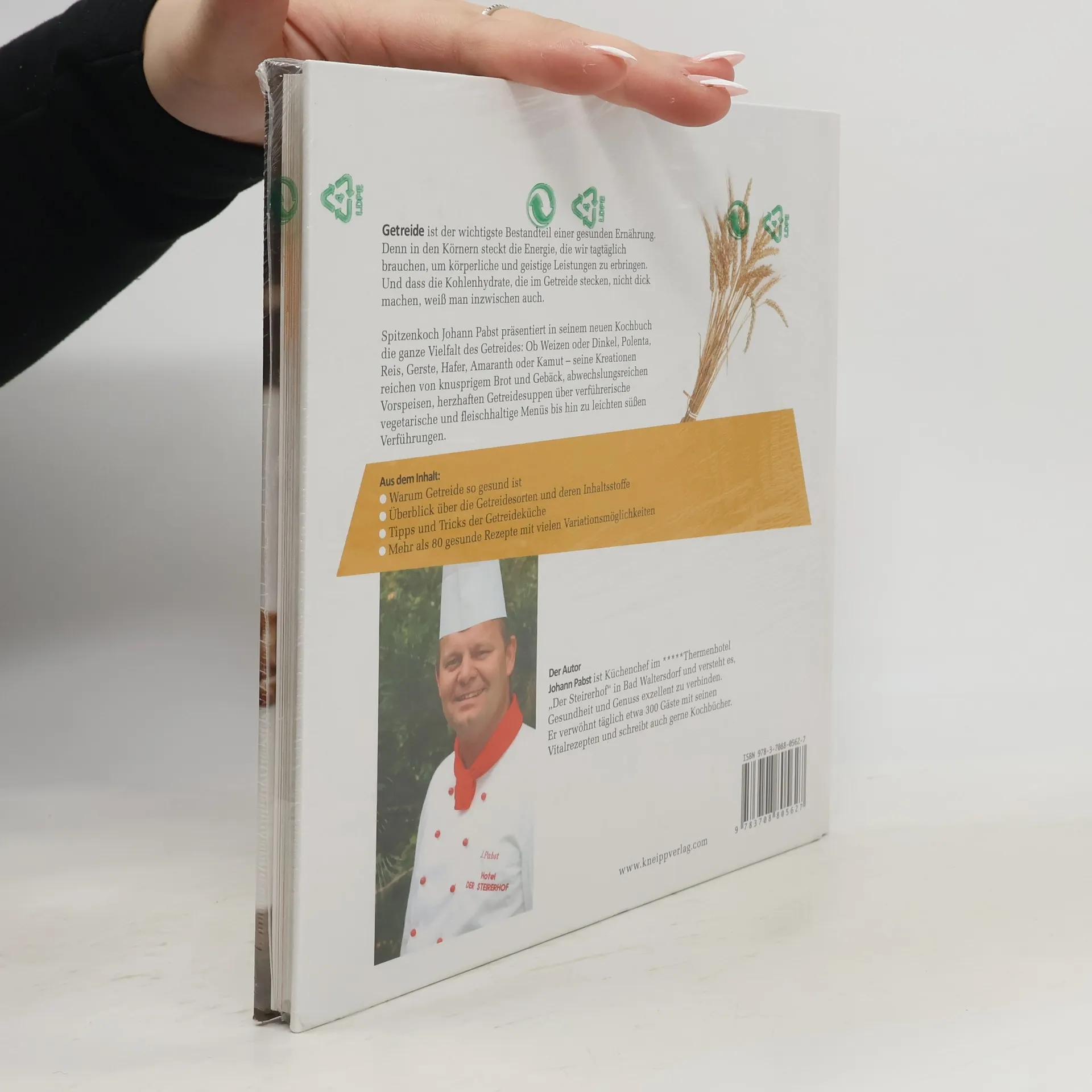 Getreide ist der wichtigste Bestandteil einer gesunden Ernährung. Denn in den Körnern steckt die Energie, die wir tagtäglich brauchen, um körperliche und geistige Leistungen zu erbringen. Und dass die Kohlenhydrate, die im Getreide stecken, nicht dick machen, weiß man inzwischen auch. Spitzenkoch Johann Pabst präsentiert in seinem neuen Kochbuch die ganze Vielfalt des Getreides: Ob Weizen oder Dinkel, Polenta, Reis, Gerste, Hafer, Amaranth oder Kamut – seine Kreationen reichen von herzhaften Getreidesuppen über verführerische vegetarische und fleischhaltige Menüs bis hin zu leichten süßen Verführungen. Aus dem Inhalt: Warum Getreide so gesund ist – Überblick über die Getreidesorten und deren Inhaltsstoffe – Mehl: Kaufen oder selbst mahlen? – Tipps und Tricks der Getreideküche – Mehr als 80 gesunde Rezepte, nährwertberechnet von Diätologin Mag. Sabine Rappitsch