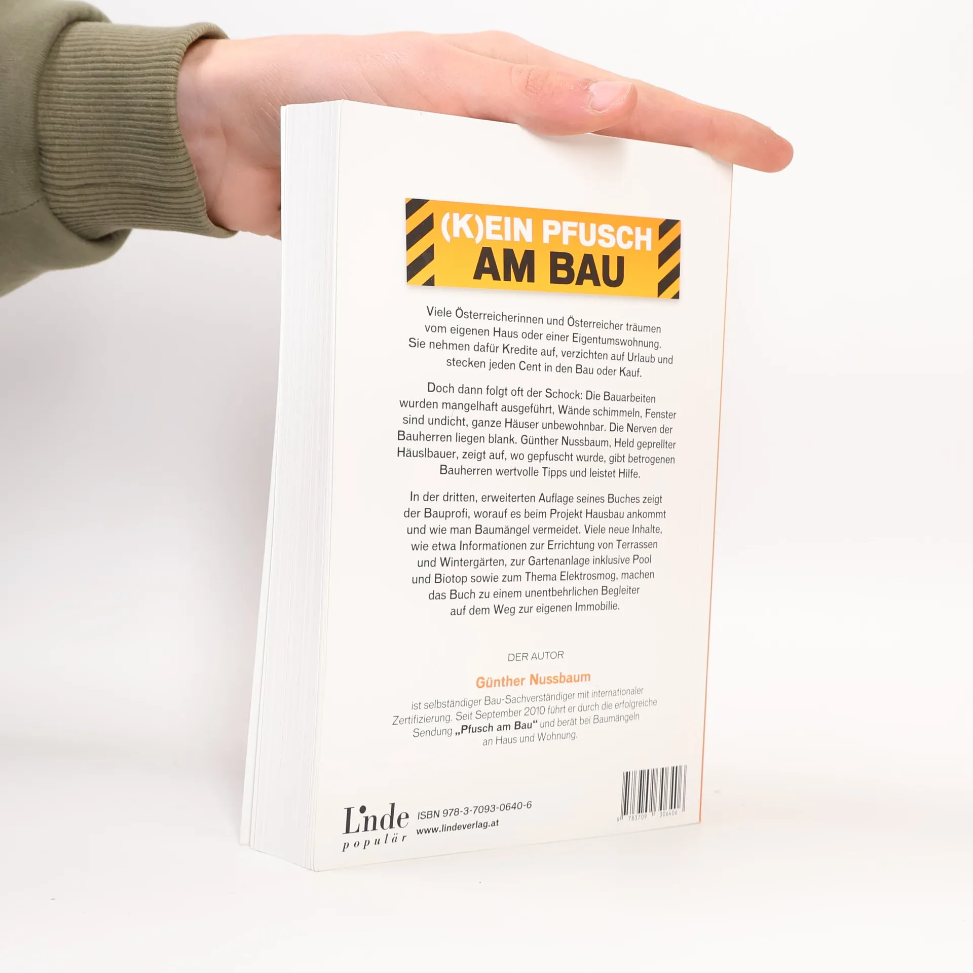 Schluss mit Pleiten, Pech und Pannen Viele Österreicherinnen und Österreicher träumen vom eigenen Haus oder einer Eigentumswohnung. Sie nehmen dafür Kredite auf, verzichten auf Urlaub und stecken jeden Cent in den Bau oder Kauf. Doch dann folgt oft der Schock: Die Bauarbeiten wurden mangelhaft ausgeführt, Wände schimmeln, Fenster sind undicht, ganze Häuser unbewohnbar. Die Nerven der Bauherren liegen blank. Günther Nussbaum, Held geprellter Häuslbauer, zeigt auf, wo gepfuscht wurde, gibt betrogenen Bauherren wertvolle Tipps und leistet Hilfe. In der dritten, erweiterten Auflage seines Buches zeigt der Bauprofi, worauf es beim Projekt Hausbau ankommt und wie man Baumängel vermeidet. Viele neue Inhalte, wie etwa Informationen zur Errichtung von Terrassen und Wintergärten, zur Gartenanlage inklusive Pool und Biotop sowie zur Gestaltung von Toren und Zäunen, machen das Buch zu einem unentbehrlichen Begleiter auf dem Weg zur eigenen Immobilie.