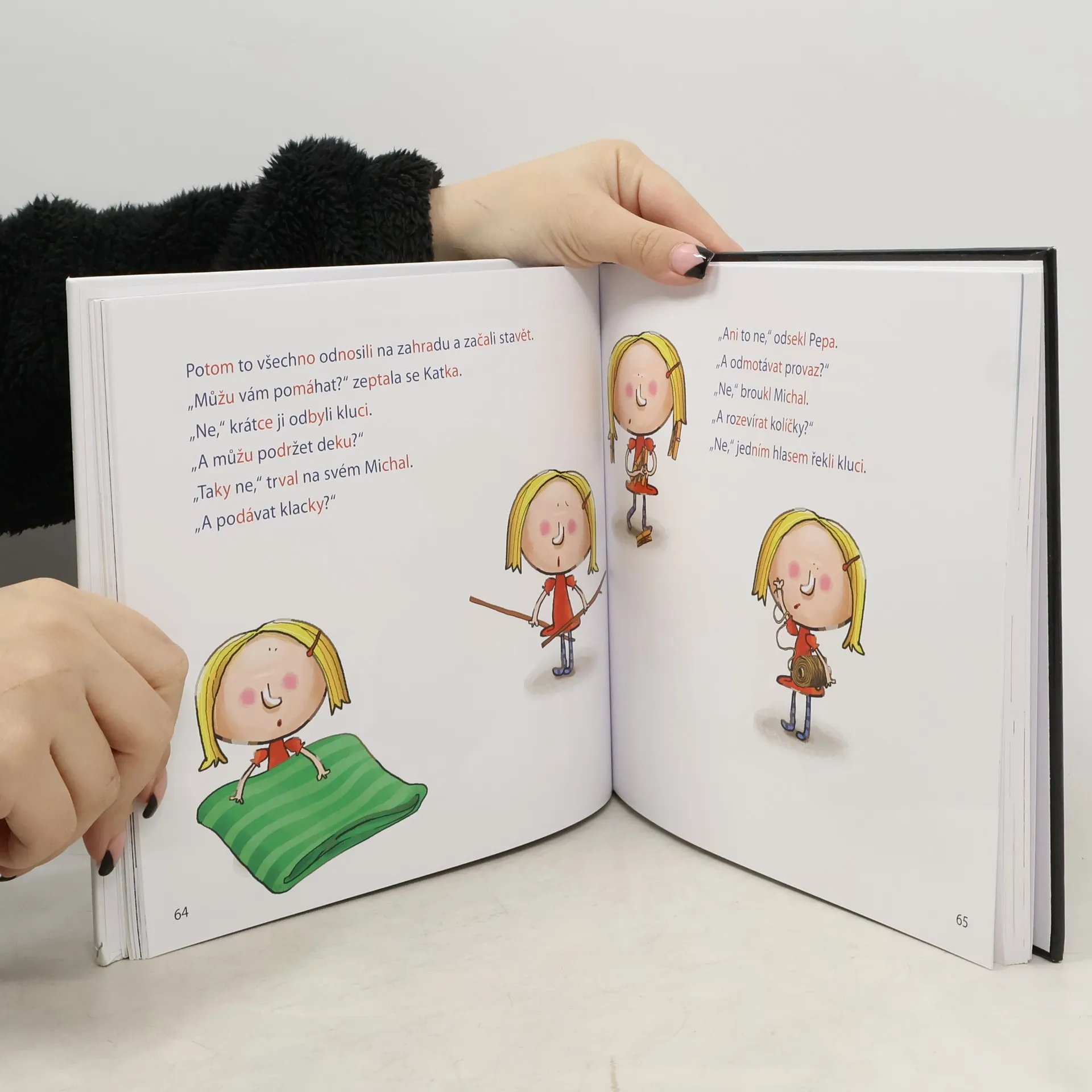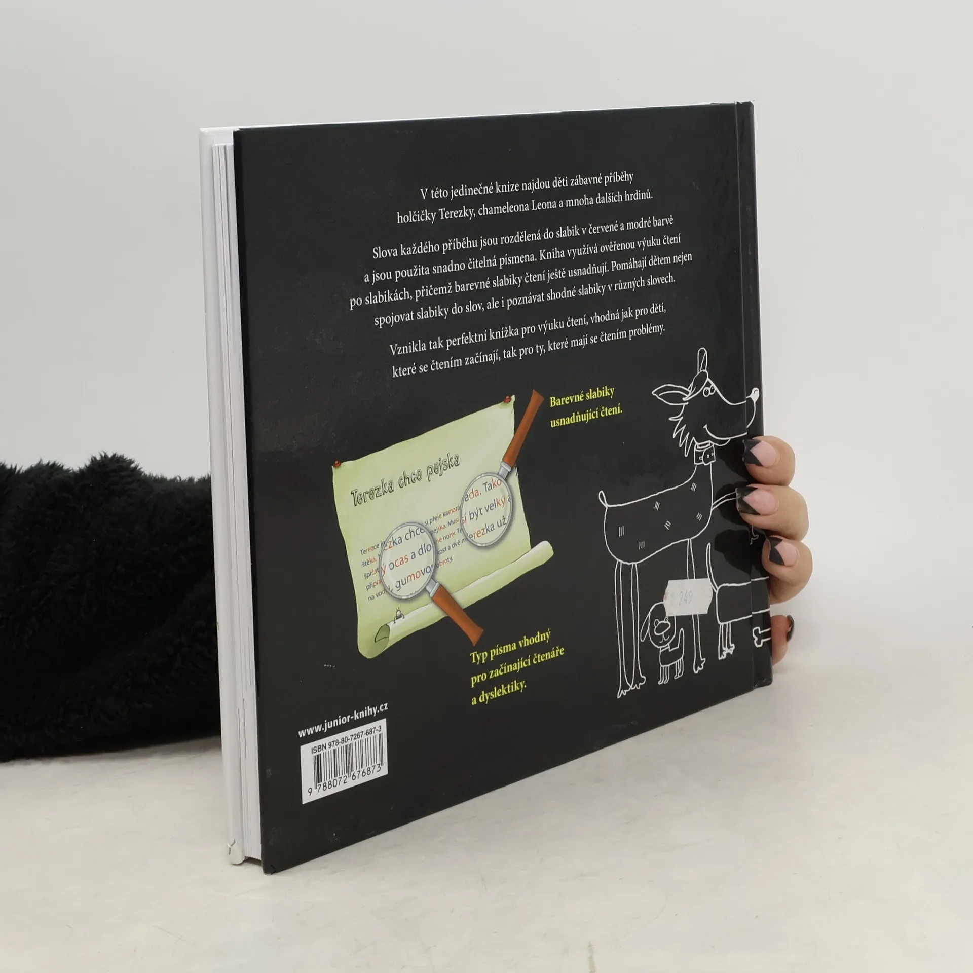 V této jedinečné knize najdou děti zábavné příběhy holčičky Terezky, chameleona Leona a mnoha dalších hrdinů. Slova každého příběhu jsou rozdělená do slabik v červené a modré barvě a jsou použita snadno čitelná písmena. Kniha využívá ověřenou výuku čtení po slabikách, přičemž barevné slabiky čtení ještě usnadňují. Pomáhají dětem nejen spojovat slabiky do slov, ale i poznávat shodné slabiky v různých slovech. Vznikla tak perfektní knížka pro výuku čtení, vhodná jak pro děti, které se čtením začínají, tak pro ty, které mají se čtením problémy. Pro děti od šesti let.