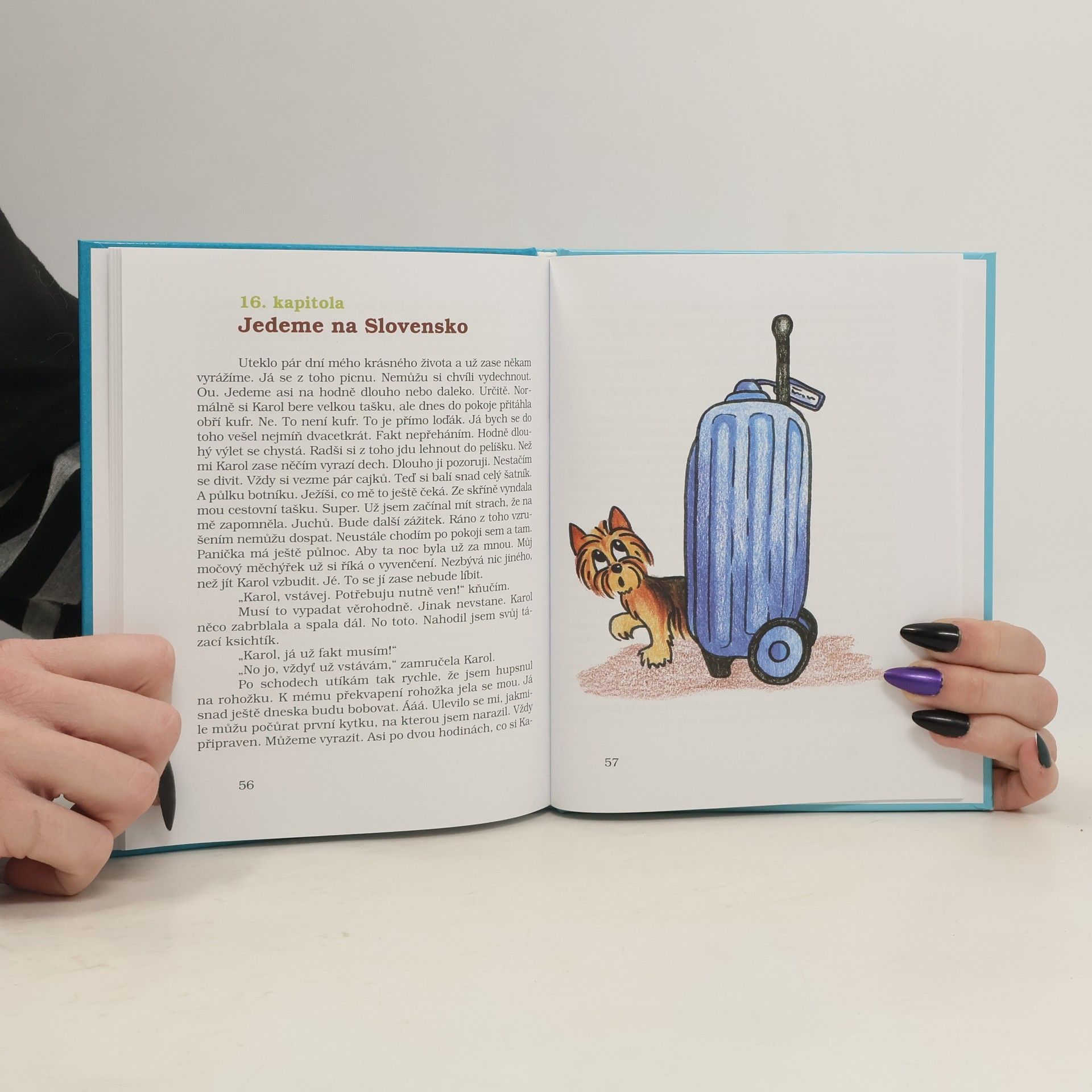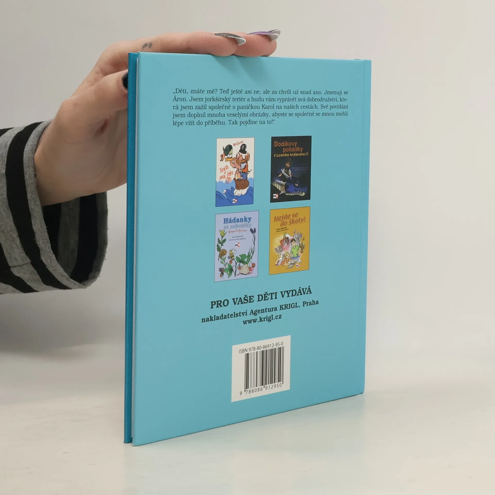 „Děti znáte mě? Teď ještě asi ne, ale za chvíli už snad ano. Jmenuji se Áron. Jsem jorkšírský teriér a budu vám vyprávět svá dobrodružství, která jsem zažil společně s paničkou Karol na našich cestách. Své povídání jsem doplnil mnoha veselými obrázky, abyste se společně se mnou mohli lépe vžít do příběhu. Tak pojďme na to!“