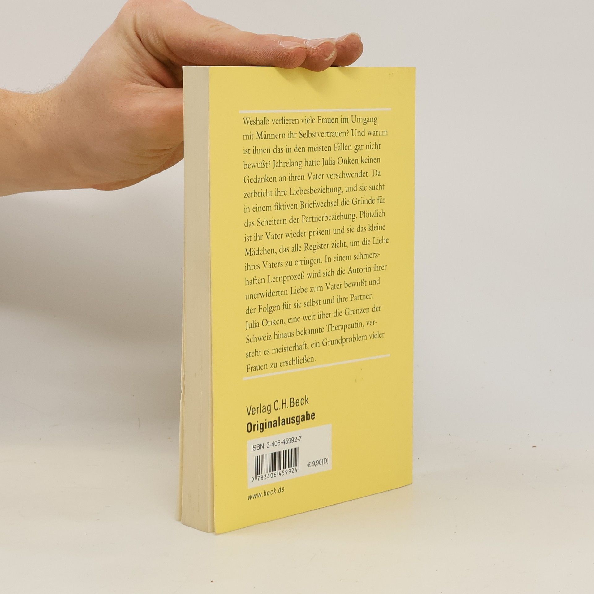 Weshalb verlieren viele Frauen im Umgang mit Männern ihr Selbstvertrauen? Und warum ist ihnen das in den meisten Fällen gar nicht bewußt? Jahrelang hatte Julia Onken keinen Gedanken an ihren Vater verschwendet. Da zerbricht ihre Liebesbeziehung, und sie sucht in einem fiktiven Briefwechsel die Gründe für das Scheitern der Partnerbeziehung. Plötzlich ist ihr Vater wieder präsent und sie das kleine Mädchen, das alle Register zieht, um die Liebe ihres Vaters zu erringen. In einem schmerzhaften Lernprozeß wird sich die Autorin ihrer unerwiderten Liebe zum Vater bewußt und der Folgen für sie selbst und ihre Partner. Julia Onken, eine weit über die Grenzen der Schweiz hinaus bekannte Therapeutin, versteht es meisterhaft, ein Grundproblem vieler Frauen zu erschließen.