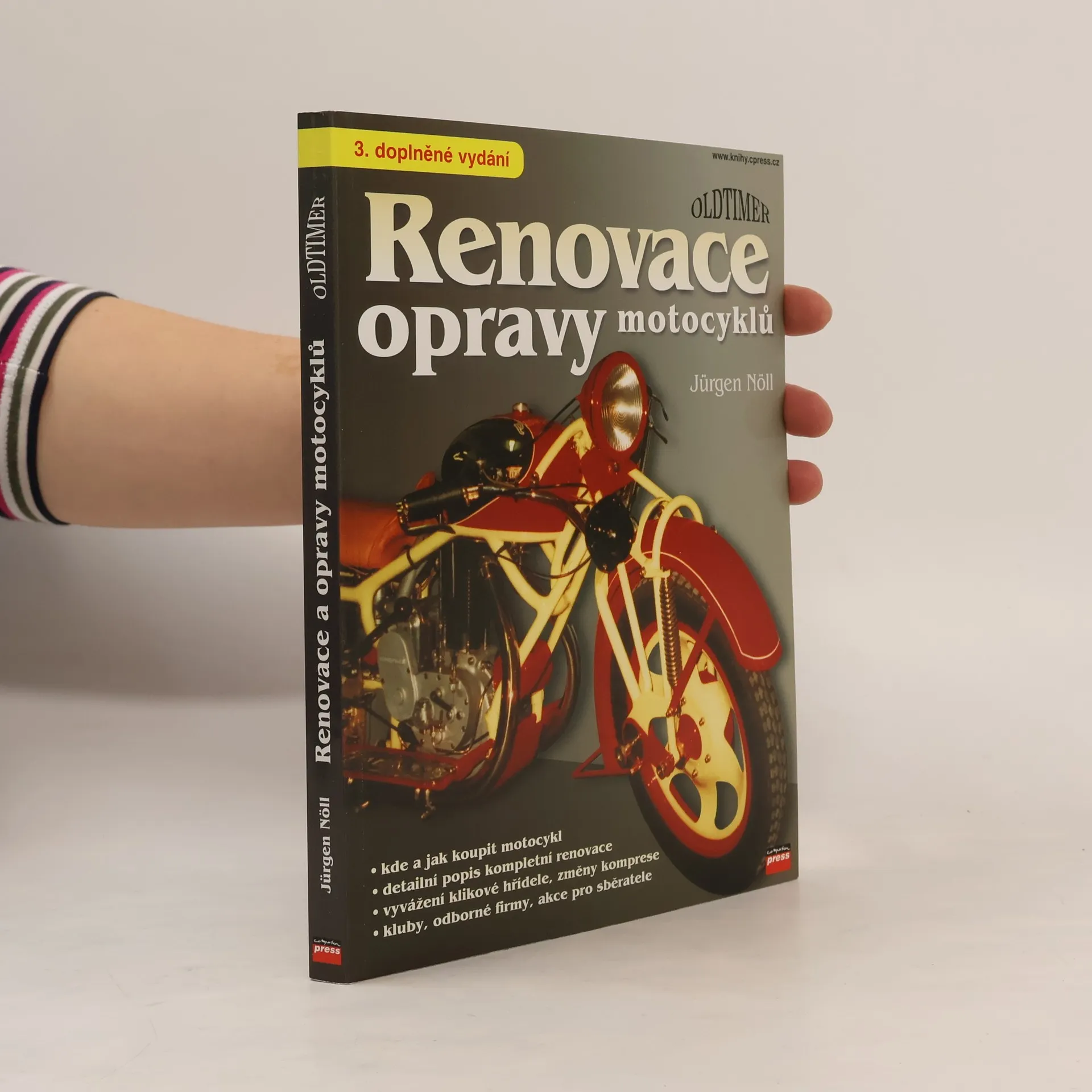 Praktická příručka pro sběratele, opraváře , uživatele a další příznivce historických i současných motocyklů. Kniha seznamuje s moderními i klasickými metodami renovace, které jsou vhodné jak pro profesionální dílnu, tak i pro renovaci motocyklu v garáži svépomocí. Najdete v ní bohaté ilustrace, názorné postupy, seznam adres klubů sdružujících veteránisty atd.